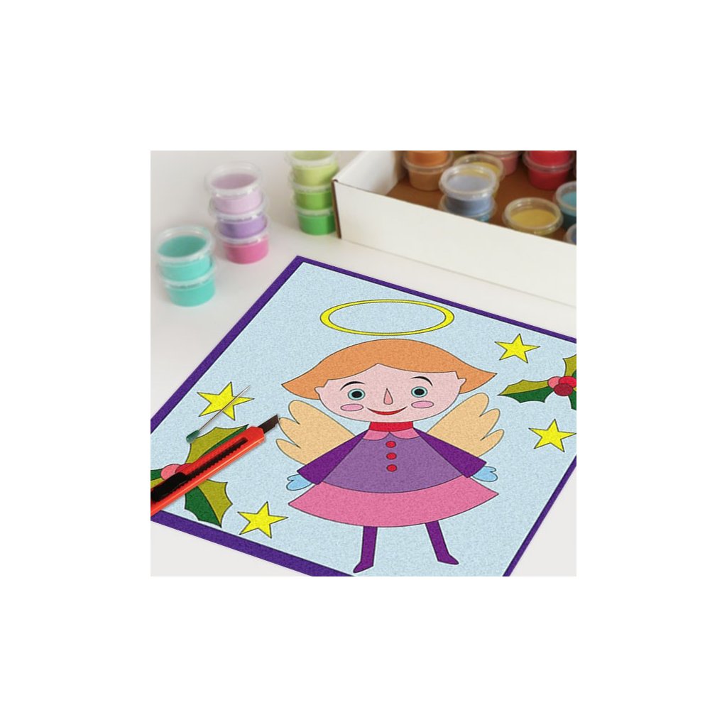 Obrázky vysypávané pískem je kreativní tvoření, které zaujme všechny generace svou jednoduchostí a nepřeberným množstvím barevných variant. Tvoření rozvíjí fantazii, barevné cítění a procvičuje jemnou motoriku prstů. Činnost může působit na uvolnění mysli, meditativně nebo relaxačně. Při tvoření v kolektivu působí pozitivně na týmový duch.Doplňkové parametry