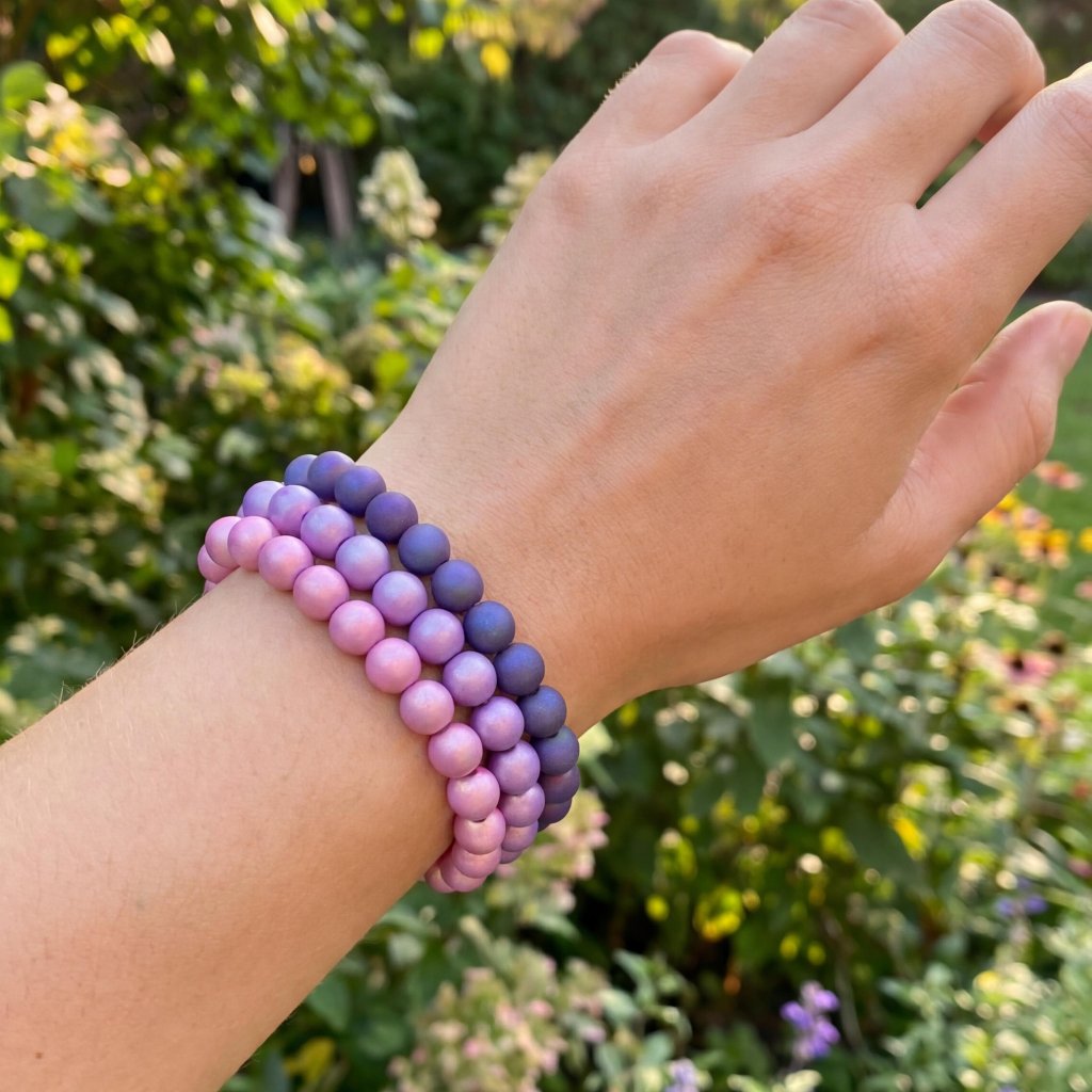 Náramek je navlečen na pružném vlasci, díky čemuž je velikost variabilní pro běžné dámské zápěstí s obvodem 18-19 cm.