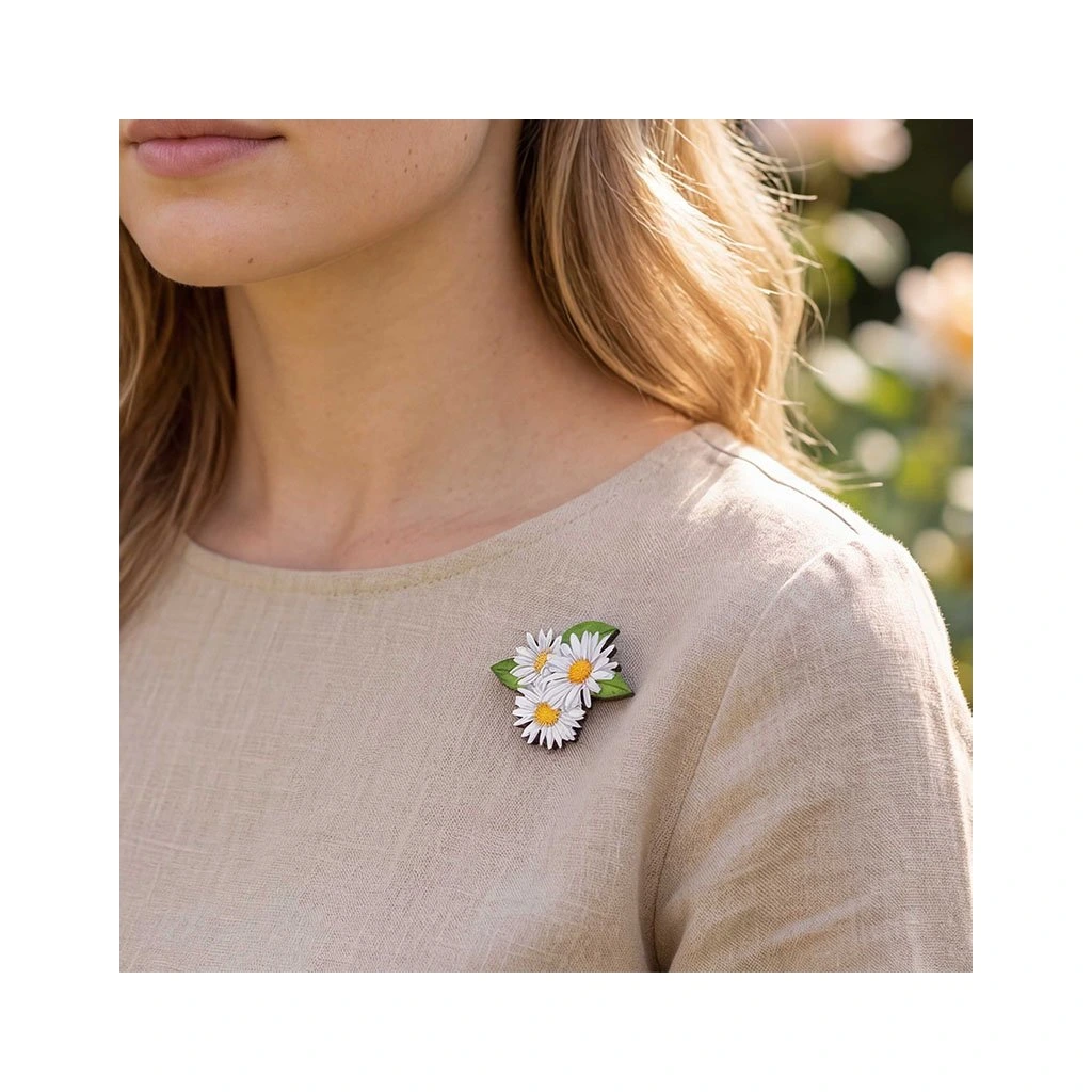 Dřevěná brož - Kopretiny