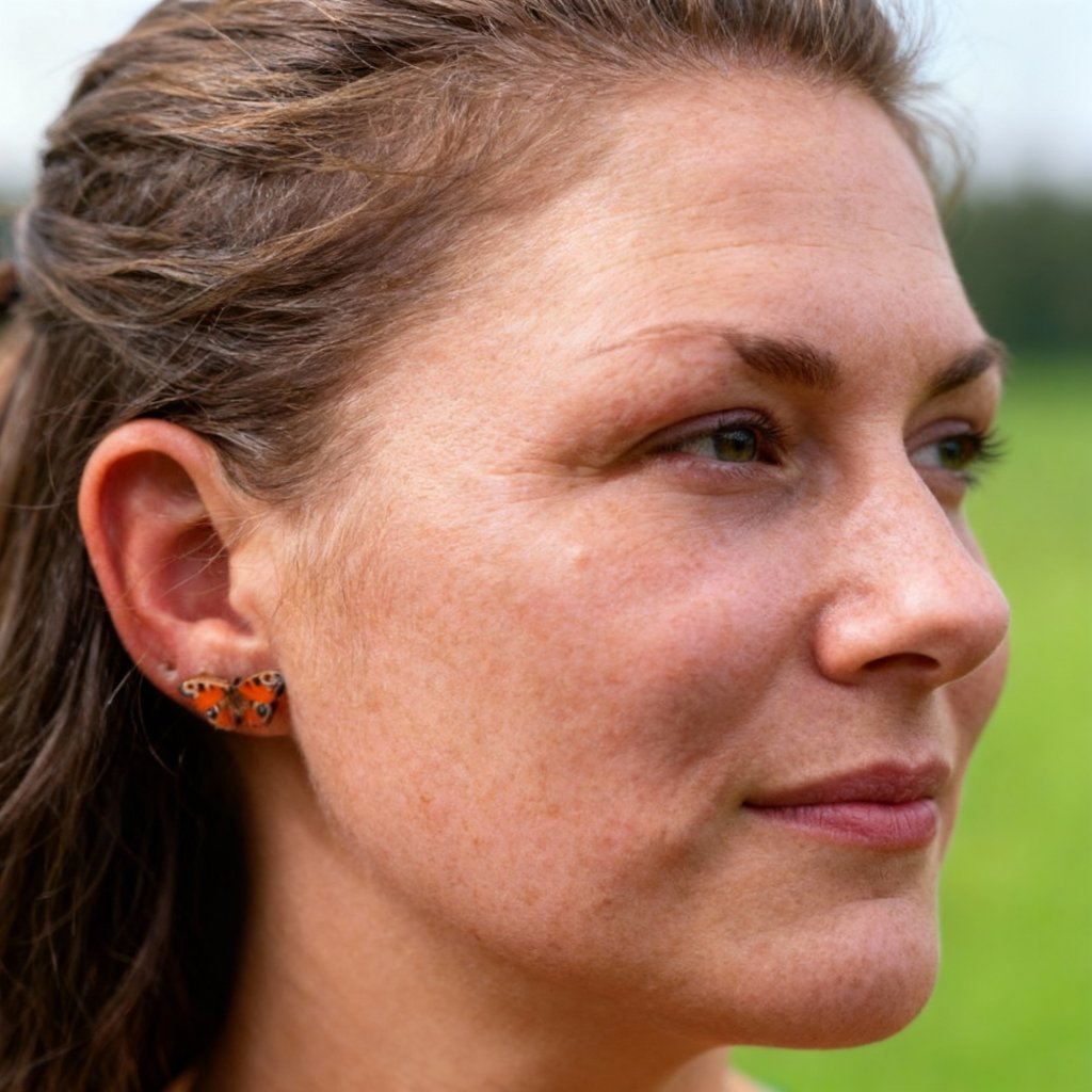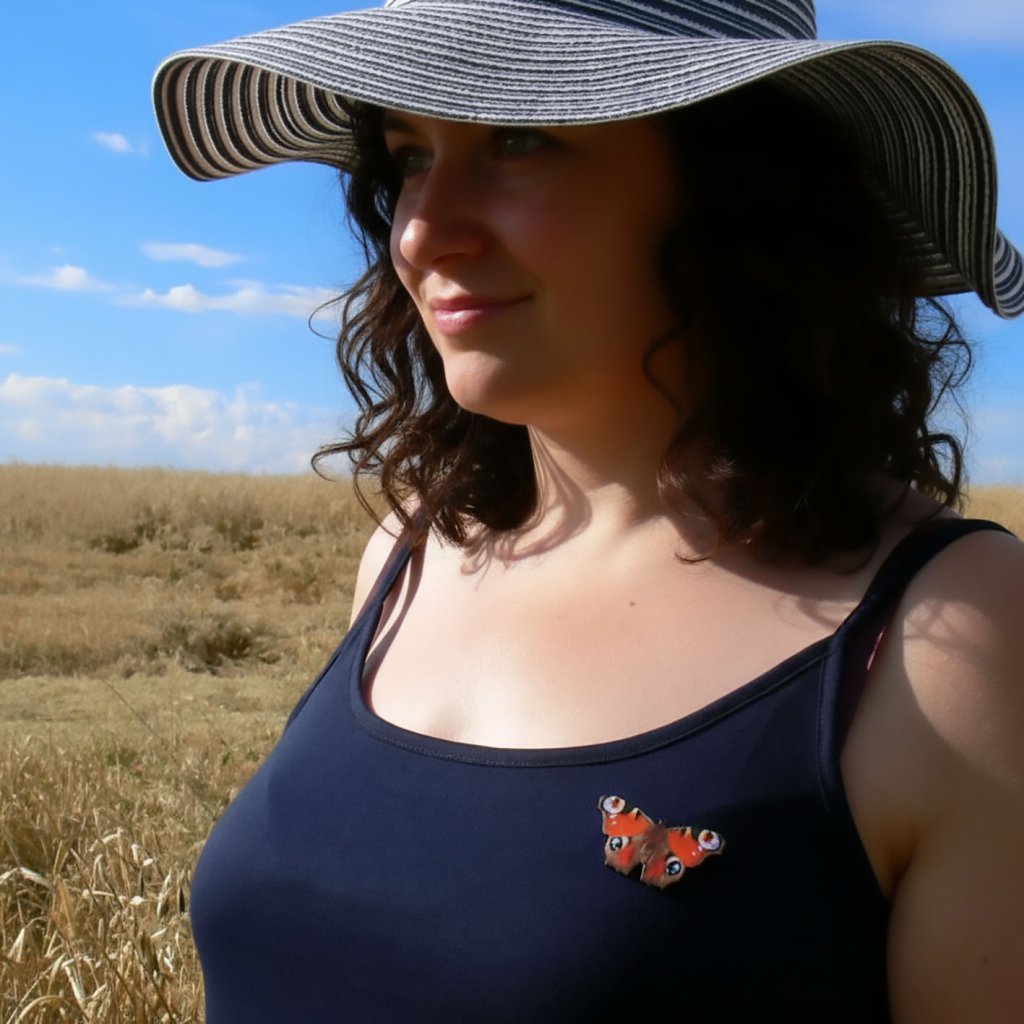 Dřevěná brož + náušnice - motýl Babočka paví oko 2