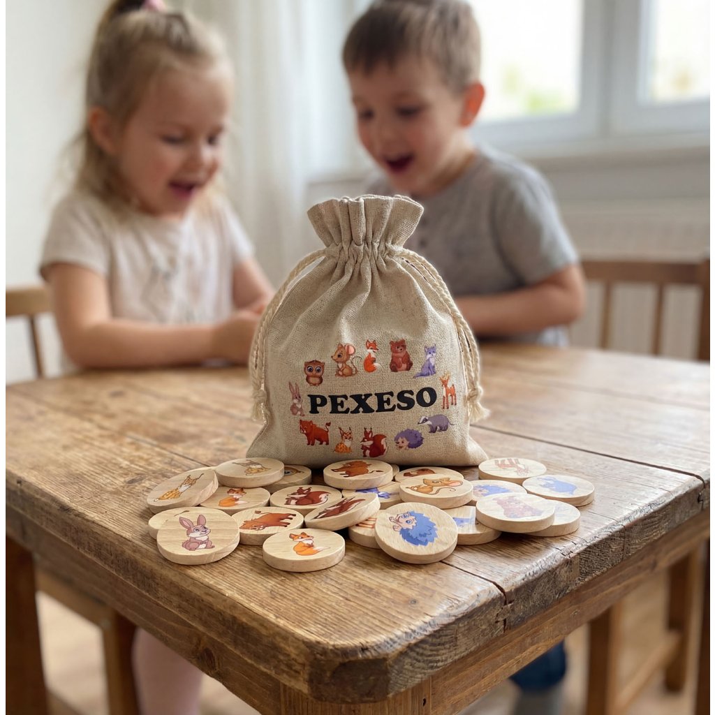 - Snadné přenášení: Díky látkovému pytlíku si pexeso můžete vzít kamkoliv – na výlet, na dovolenou nebo třeba na návštěvu k babičce.
