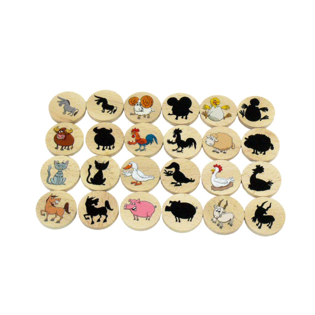 Dřevěné stínové pexeso 24 ks - zvířata na farmě