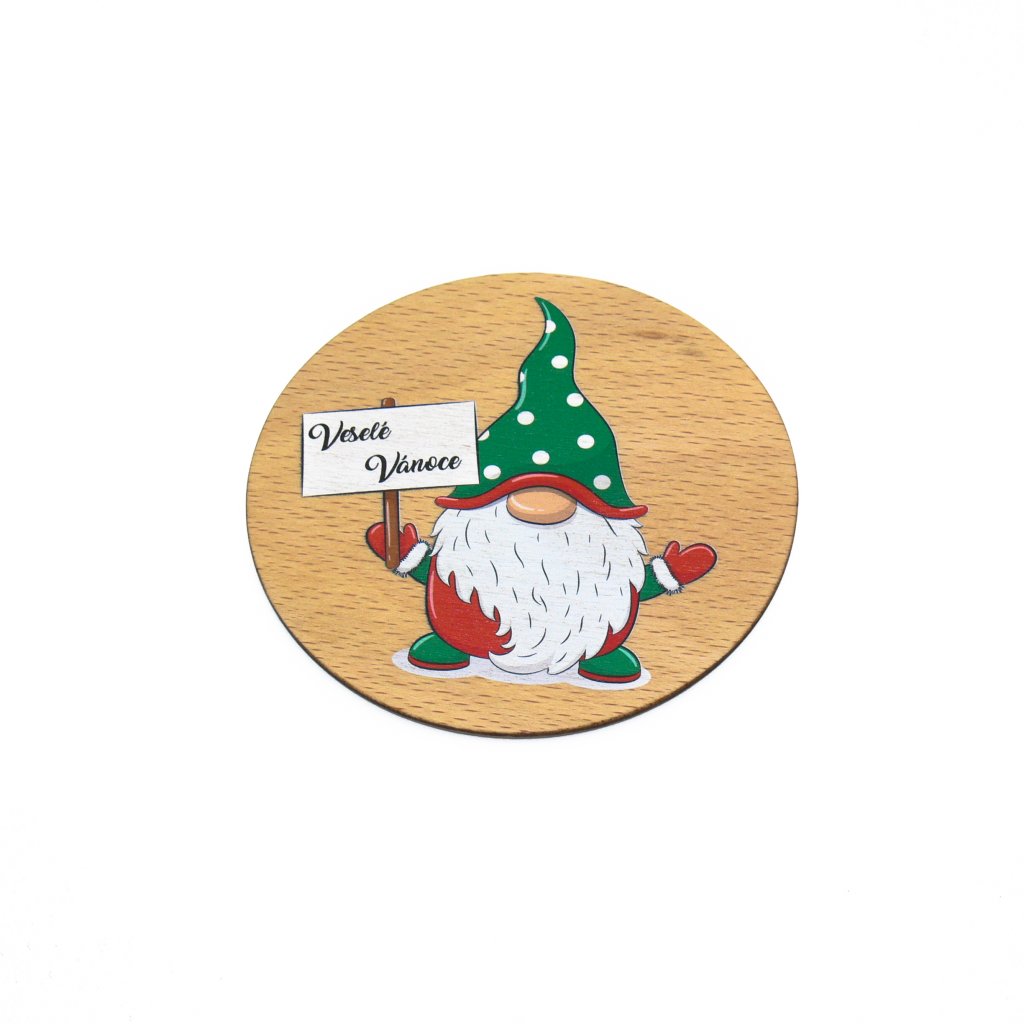 Dřevěný podtácek - Veselé Vánoce skřítek