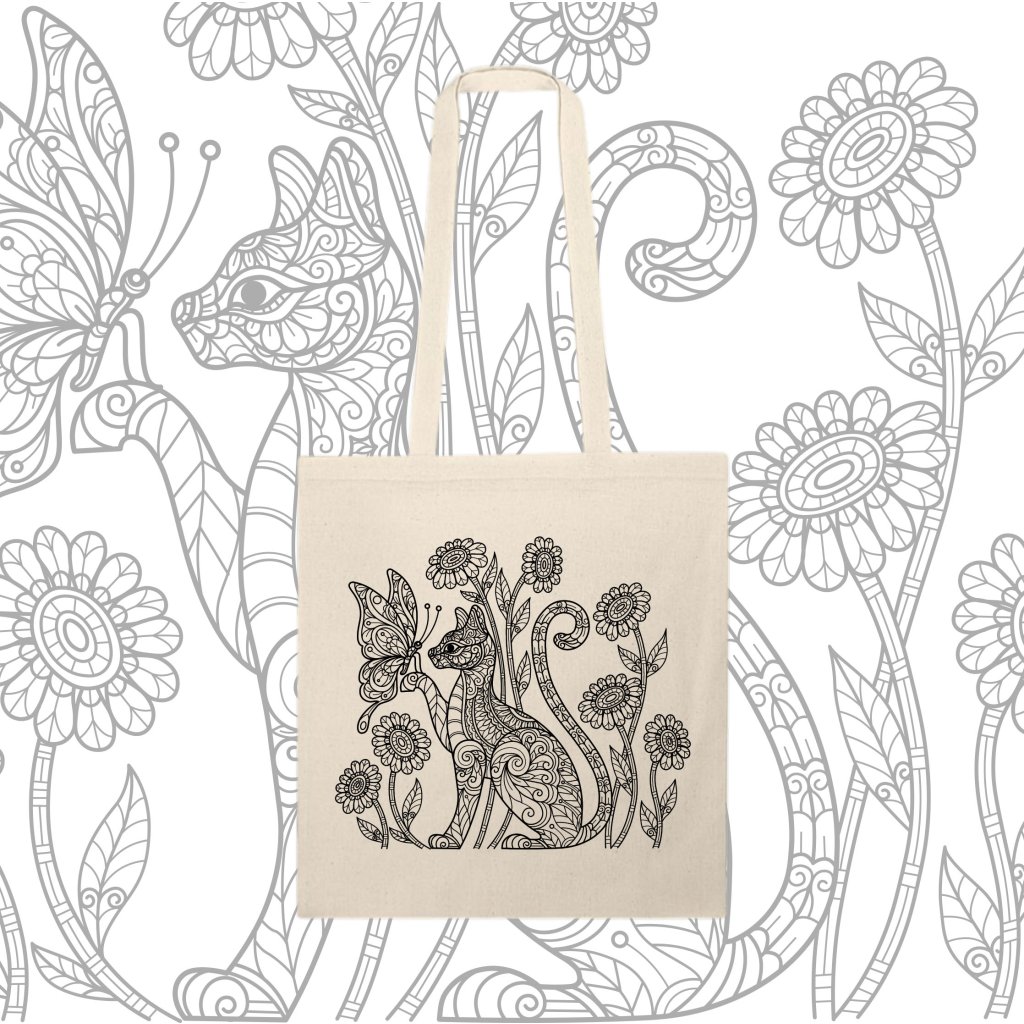 Ekotaška - kočka, přírodní 140g/m2