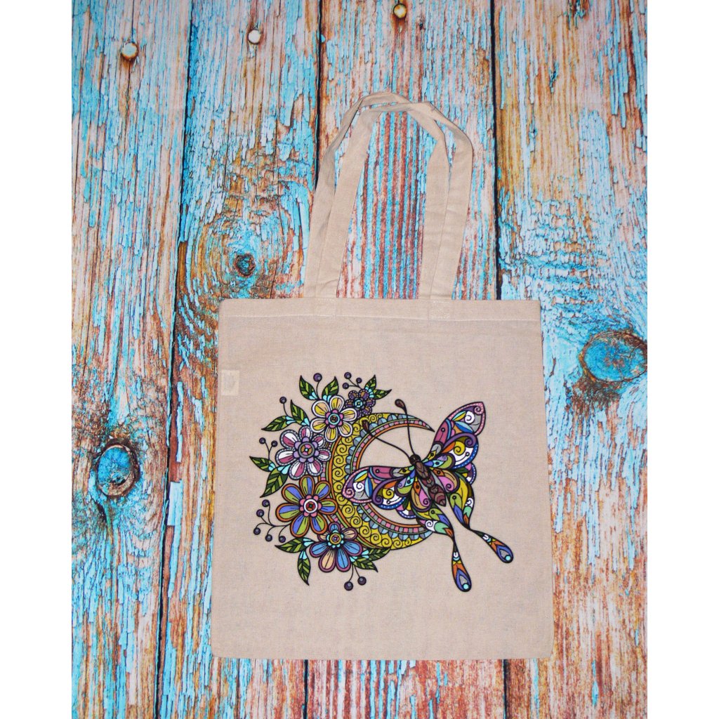 Ekotaška - motýl/měsíc, přírodní 140g/m²