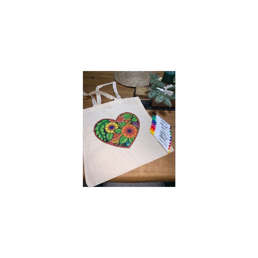 Taška ze 100% bavlny (140 g/m²) s uchy 60 cm, rozměr 37,5 x 41,5 cm. Tašku je možné prát v pračce na 30°C. Fixy na textil naleznete v naší nabídce zde : https://www.afes.cz/fixy/