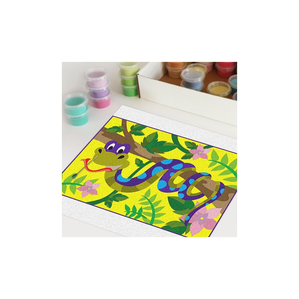 Obrázky vysypávané pískem je kreativní tvoření, které zaujme všechny generace svou jednoduchostí a nepřeberným množstvím barevných variant. Tvoření rozvíjí fantazii, barevné cítění a procvičuje jemnou motoriku prstů. Činnost může působit na uvolnění mysli, meditativně nebo relaxačně. Při tvoření v kolektivu působí pozitivně na týmový duch.Doplňkové parametry