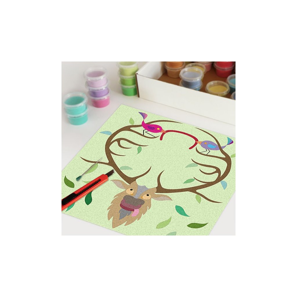 Obrázky vysypávané pískem je kreativní tvoření, které zaujme všechny generace svou jednoduchostí a nepřeberným množstvím barevných variant. Tvoření rozvíjí fantazii, barevné cítění a procvičuje jemnou motoriku prstů. Činnost může působit na uvolnění mysli, meditativně nebo relaxačně. Při tvoření v kolektivu působí pozitivně na týmový duch.Doplňkové parametry