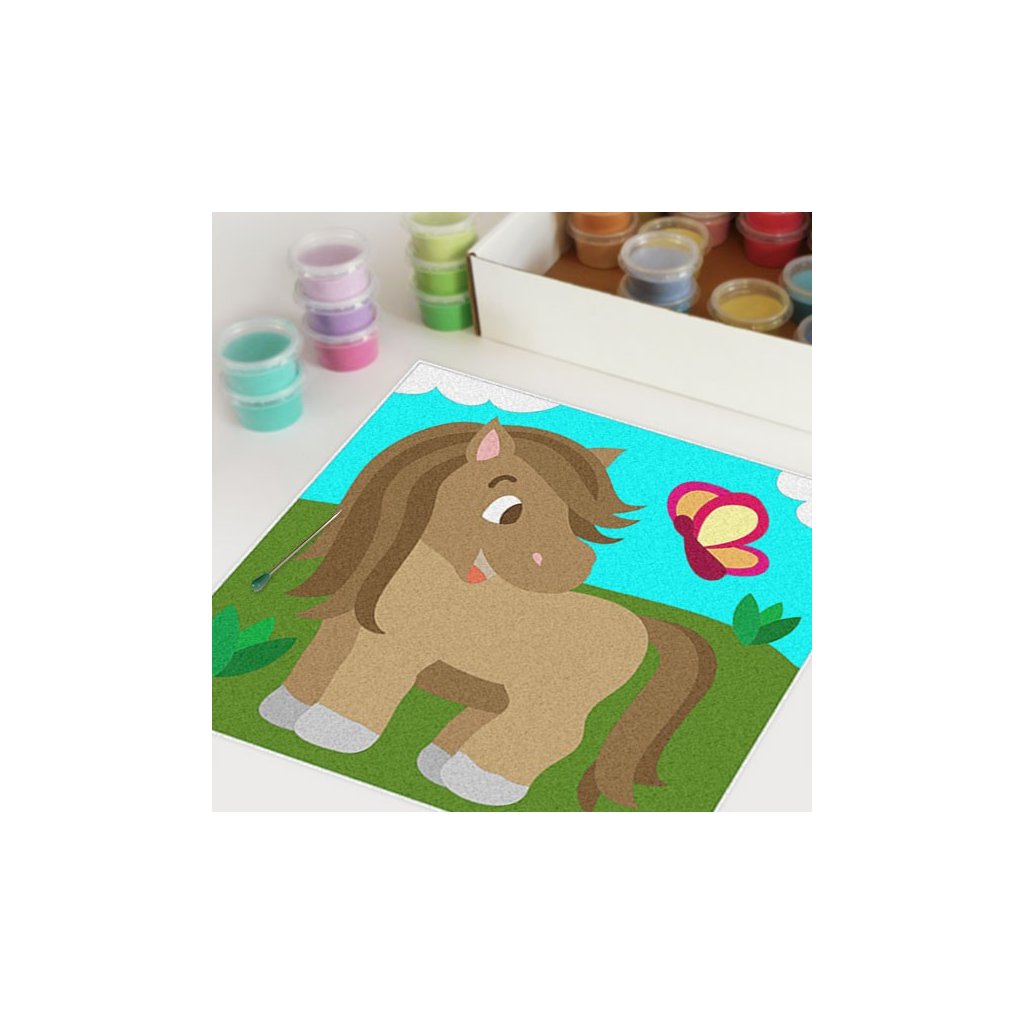Obrázky vysypávané pískem je kreativní tvoření, které zaujme všechny generace svou jednoduchostí a nepřeberným množstvím barevných variant. Tvoření rozvíjí fantazii, barevné cítění a procvičuje jemnou motoriku prstů. Činnost může působit na uvolnění mysli, meditativně nebo relaxačně. Při tvoření v kolektivu působí pozitivně na týmový duch.Doplňkové parametry