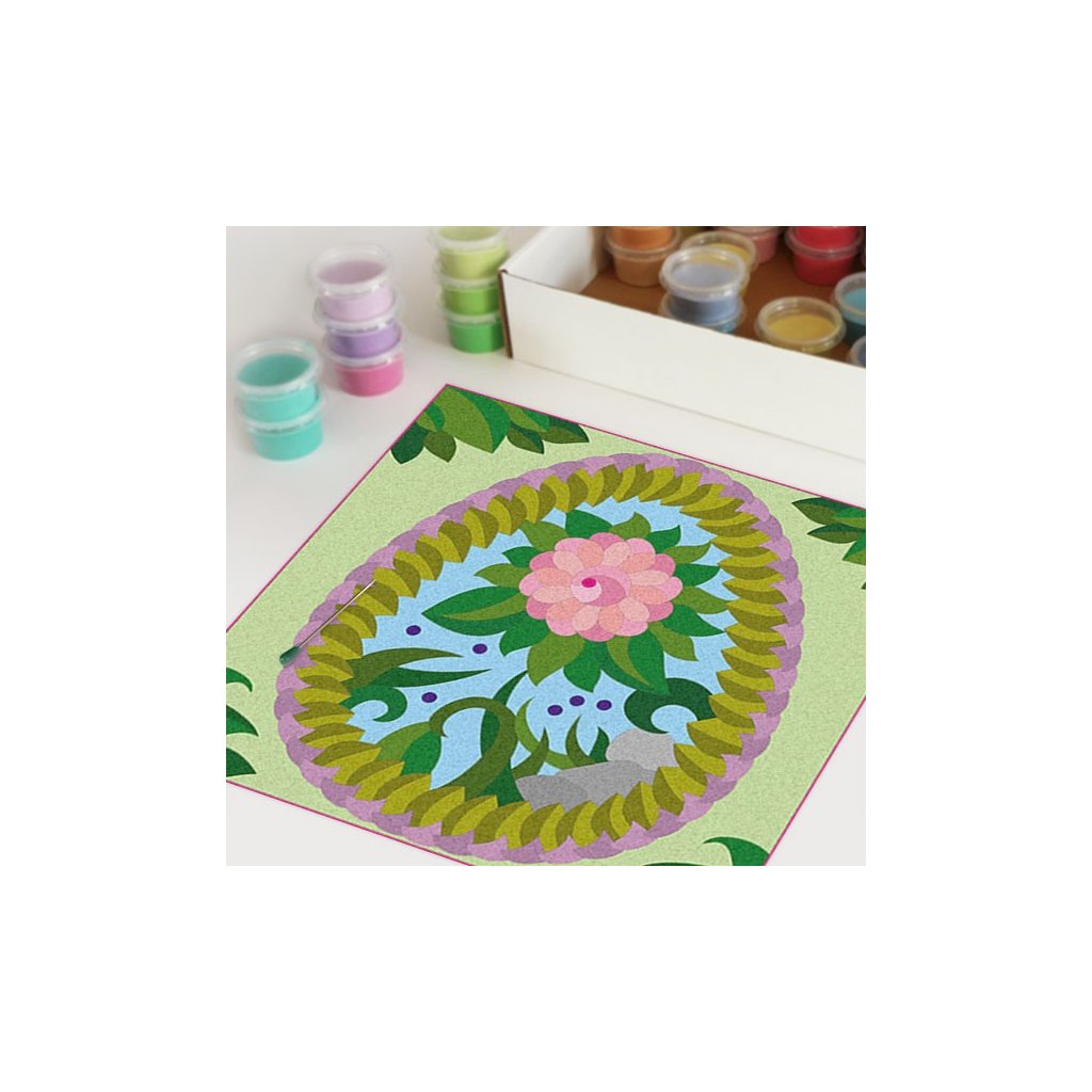 Obrázky vysypávané pískem je kreativní tvoření, které zaujme všechny generace svou jednoduchostí a nepřeberným množstvím barevných variant. Tvoření rozvíjí fantazii, barevné cítění a procvičuje jemnou motoriku prstů. Činnost může působit na uvolnění mysli, meditativně nebo relaxačně. Při tvoření v kolektivu působí pozitivně na týmový duch.Doplňkové parametry