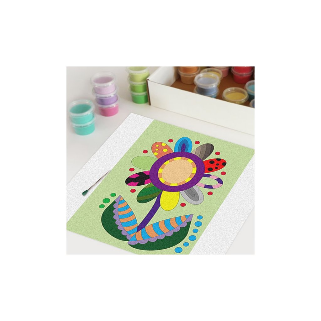 Obrázky vysypávané pískem je kreativní tvoření, které zaujme všechny generace svou jednoduchostí a nepřeberným množstvím barevných variant. Tvoření rozvíjí fantazii, barevné cítění a procvičuje jemnou motoriku prstů. Činnost může působit na uvolnění mysli, meditativně nebo relaxačně. Při tvoření v kolektivu působí pozitivně na týmový duch.Doplňkové parametry