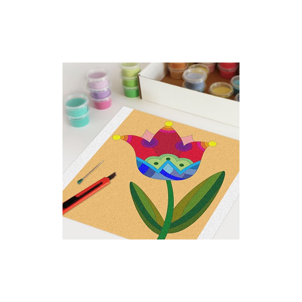 Obrázky vysypávané pískem je kreativní tvoření, které zaujme všechny generace svou jednoduchostí a nepřeberným množstvím barevných variant. Tvoření rozvíjí fantazii, barevné cítění a procvičuje jemnou motoriku prstů. Činnost může působit na uvolnění mysli, meditativně nebo relaxačně. Při tvoření v kolektivu působí pozitivně na týmový duch.Doplňkové parametry