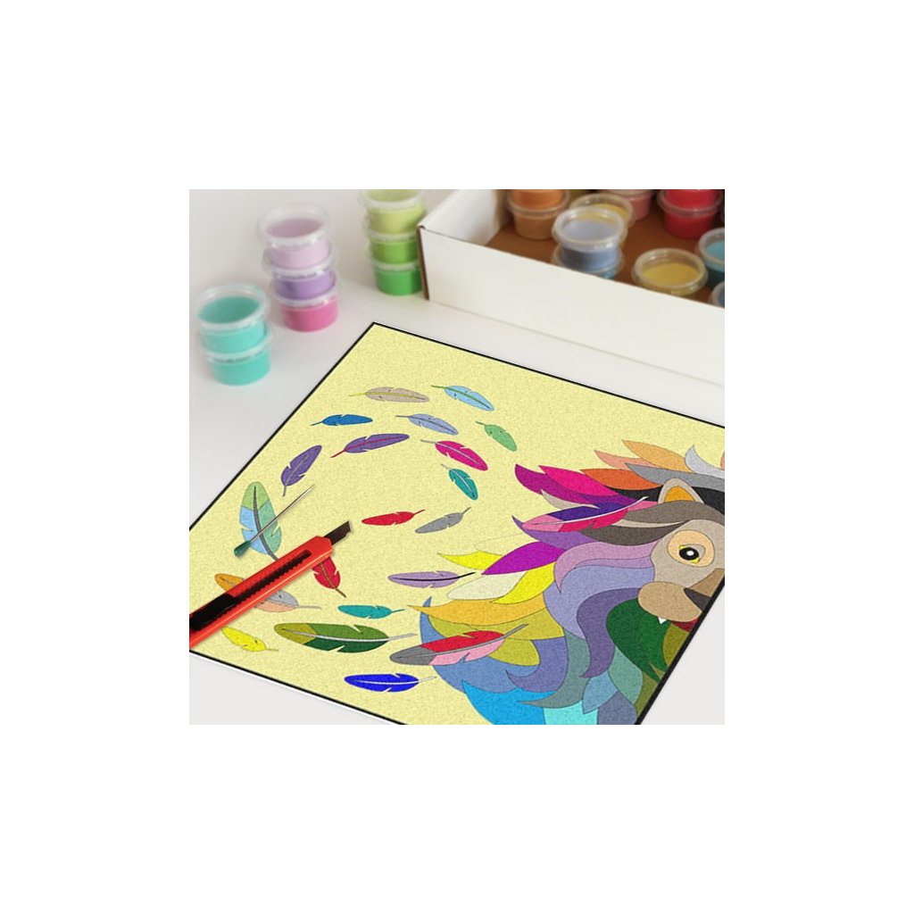 Obrázky vysypávané pískem je kreativní tvoření, které zaujme všechny generace svou jednoduchostí a nepřeberným množstvím barevných variant. Tvoření rozvíjí fantazii, barevné cítění a procvičuje jemnou motoriku prstů. Činnost může působit na uvolnění mysli, meditativně nebo relaxačně. Při tvoření v kolektivu působí pozitivně na týmový duch.Doplňkové parametry