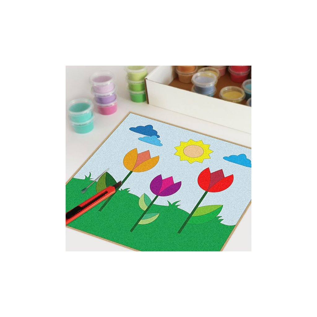 Obrázky vysypávané pískem je kreativní tvoření, které zaujme všechny generace svou jednoduchostí a nepřeberným množstvím barevných variant. Tvoření rozvíjí fantazii, barevné cítění a procvičuje jemnou motoriku prstů. Činnost může působit na uvolnění mysli, meditativně nebo relaxačně. Při tvoření v kolektivu působí pozitivně na týmový duch.Doplňkové parametry