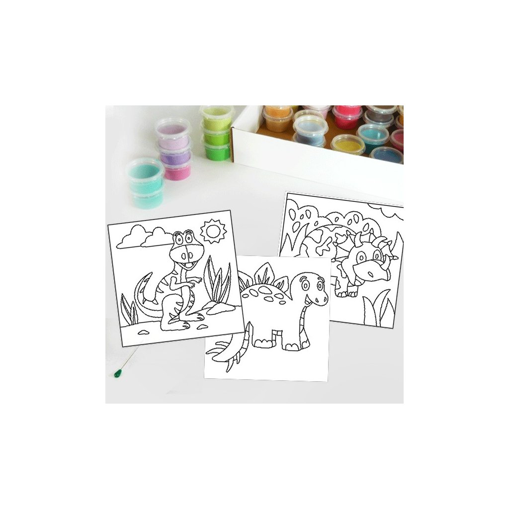 Unikátní tvořivá sada obrázků z barevného písku. Sada obsahuje:- 3 šablony obrázků 16 x 16 cm ( dinosauři 3, 5, 6 )- 12ks barevných písků (po 13g)- vybrané přislušenství ZDARMA v rámci sady
