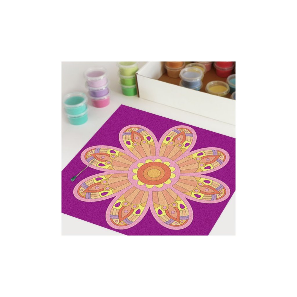 Obrázky vysypávané pískem je kreativní tvoření, které zaujme všechny generace svou jednoduchostí a nepřeberným množstvím barevných variant. Tvoření rozvíjí fantazii, barevné cítění a procvičuje jemnou motoriku prstů. Činnost může působit na uvolnění mysli, meditativně nebo relaxačně. Při tvoření v kolektivu působí pozitivně na týmový duch. Mandaly jsou velmi starou pomůckou při meditaci. V dnešní době je to nástroj pro relaxaci a sebepoznání. V mandalách se potkává barva (ženská energie) a tvar (mužská energie). To vše dohromady utváří harmonický celek nesoucí určitou energii, která během práce s obrazcem působí na duši člověka, který tvoří i na duši pozorovatele. Slovo mandala pochází ze sanskrtu a znamená kruh. Samotná mandala je nad kulturní symbol jednoty a rovnováhy vyskytující se ve všech dobách, kulturách i náboženstvích. Mandaly jsou staré jako lidstvo samo, což dokazuje i fakt, že nejstarší obrazce tohoto druhu se vyskytují už v paleolitu. Mandaly jsou všude kolem nás. Mandaly se dají najít také v půdorysu staveb ze starého Egypta, Babylónu a Jávy. V moderních dějinách je mandala dle posvátné geometrie (semeno života) půdorysem nejvyšší budovy světa v Dubaji.Doplňkové parametry