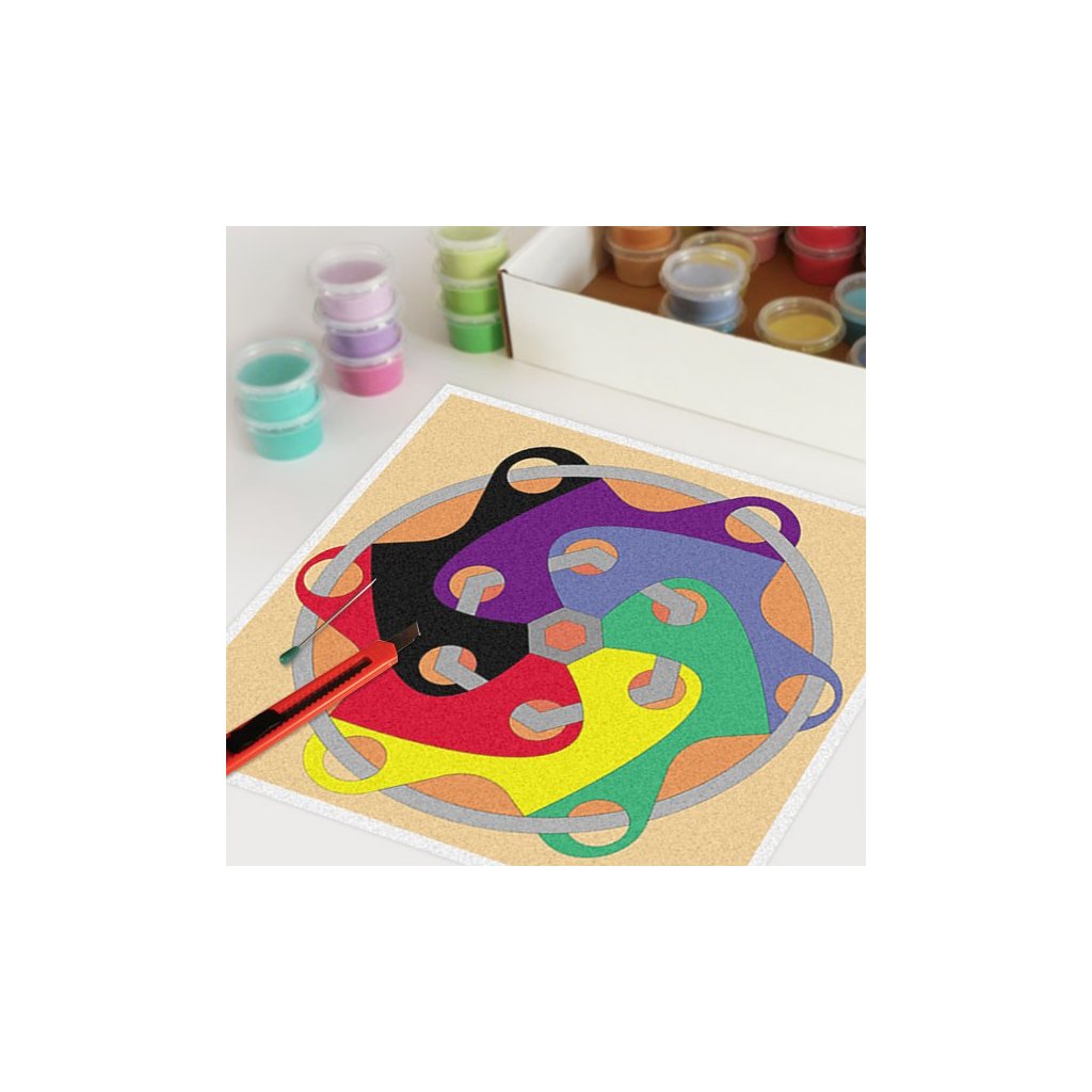 Obrázky vysypávané pískem je kreativní tvoření, které zaujme všechny generace svou jednoduchostí a nepřeberným množstvím barevných variant. Tvoření rozvíjí fantazii, barevné cítění a procvičuje jemnou motoriku prstů. Činnost může působit na uvolnění mysli, meditativně nebo relaxačně. Při tvoření v kolektivu působí pozitivně na týmový duch. Mandaly jsou velmi starou pomůckou při meditaci. V dnešní době je to nástroj pro relaxaci a sebepoznání. V mandalách se potkává barva (ženská energie) a tvar (mužská energie). To vše dohromady utváří harmonický celek nesoucí určitou energii, která během práce s obrazcem působí na duši člověka, který tvoří i na duši pozorovatele. Slovo mandala pochází ze sanskrtu a znamená kruh. Samotná mandala je nad kulturní symbol jednoty a rovnováhy vyskytující se ve všech dobách, kulturách i náboženstvích. Mandaly jsou staré jako lidstvo samo, což dokazuje i fakt, že nejstarší obrazce tohoto druhu se vyskytují už v paleolitu. Mandaly jsou všude kolem nás. Mandaly se dají najít také v půdorysu staveb ze starého Egypta, Babylónu a Jávy. V moderních dějinách je mandala dle posvátné geometrie (semeno života) půdorysem nejvyšší budovy světa v Dubaji.Doplňkové parametry