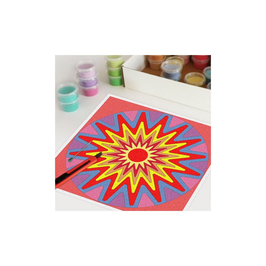 Obrázky vysypávané pískem je kreativní tvoření, které zaujme všechny generace svou jednoduchostí a nepřeberným množstvím barevných variant. Tvoření rozvíjí fantazii, barevné cítění a procvičuje jemnou motoriku prstů. Činnost může působit na uvolnění mysli, meditativně nebo relaxačně. Při tvoření v kolektivu působí pozitivně na týmový duch. Mandaly jsou velmi starou pomůckou při meditaci. V dnešní době je to nástroj pro relaxaci a sebepoznání. V mandalách se potkává barva (ženská energie) a tvar (mužská energie). To vše dohromady utváří harmonický celek nesoucí určitou energii, která během práce s obrazcem působí na duši člověka, který tvoří i na duši pozorovatele. Slovo mandala pochází ze sanskrtu a znamená kruh. Samotná mandala je nad kulturní symbol jednoty a rovnováhy vyskytující se ve všech dobách, kulturách i náboženstvích. Mandaly jsou staré jako lidstvo samo, což dokazuje i fakt, že nejstarší obrazce tohoto druhu se vyskytují už v paleolitu. Mandaly jsou všude kolem nás. Mandaly se dají najít také v půdorysu staveb ze starého Egypta, Babylónu a Jávy. V moderních dějinách je mandala dle posvátné geometrie (semeno života) půdorysem nejvyšší budovy světa v Dubaji.Doplňkové parametry