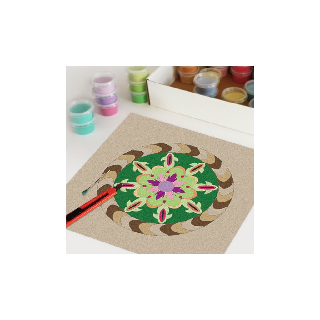Obrázky vysypávané pískem je kreativní tvoření, které zaujme všechny generace svou jednoduchostí a nepřeberným množstvím barevných variant. Tvoření rozvíjí fantazii, barevné cítění a procvičuje jemnou motoriku prstů. Činnost může působit na uvolnění mysli, meditativně nebo relaxačně. Při tvoření v kolektivu působí pozitivně na týmový duch. Mandaly jsou velmi starou pomůckou při meditaci. V dnešní době je to nástroj pro relaxaci a sebepoznání. V mandalách se potkává barva (ženská energie) a tvar (mužská energie). To vše dohromady utváří harmonický celek nesoucí určitou energii, která během práce s obrazcem působí na duši člověka, který tvoří i na duši pozorovatele. Slovo mandala pochází ze sanskrtu a znamená kruh. Samotná mandala je nad kulturní symbol jednoty a rovnováhy vyskytující se ve všech dobách, kulturách i náboženstvích. Mandaly jsou staré jako lidstvo samo, což dokazuje i fakt, že nejstarší obrazce tohoto druhu se vyskytují už v paleolitu. Mandaly jsou všude kolem nás. Mandaly se dají najít také v půdorysu staveb ze starého Egypta, Babylónu a Jávy. V moderních dějinách je mandala dle posvátné geometrie (semeno života) půdorysem nejvyšší budovy světa v Dubaji.Doplňkové parametry