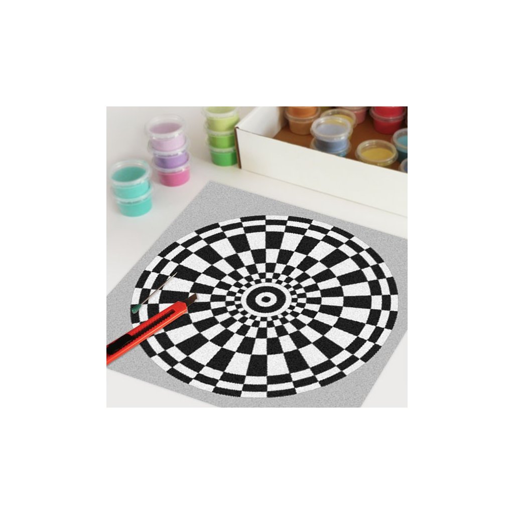 Obrázky vysypávané pískem je kreativní tvoření, které zaujme všechny generace svou jednoduchostí a nepřeberným množstvím barevných variant. Tvoření rozvíjí fantazii, barevné cítění a procvičuje jemnou motoriku prstů. Činnost může působit na uvolnění mysli, meditativně nebo relaxačně. Při tvoření v kolektivu působí pozitivně na týmový duch. Mandaly jsou velmi starou pomůckou při meditaci. V dnešní době je to nástroj pro relaxaci a sebepoznání. V mandalách se potkává barva (ženská energie) a tvar (mužská energie). To vše dohromady utváří harmonický celek nesoucí určitou energii, která během práce s obrazcem působí na duši člověka, který tvoří i na duši pozorovatele. Slovo mandala pochází ze sanskrtu a znamená kruh. Samotná mandala je nad kulturní symbol jednoty a rovnováhy vyskytující se ve všech dobách, kulturách i náboženstvích. Mandaly jsou staré jako lidstvo samo, což dokazuje i fakt, že nejstarší obrazce tohoto druhu se vyskytují už v paleolitu. Mandaly jsou všude kolem nás. Mandaly se dají najít také v půdorysu staveb ze starého Egypta, Babylónu a Jávy. V moderních dějinách je mandala dle posvátné geometrie (semeno života) půdorysem nejvyšší budovy světa v Dubaji.Doplňkové parametry