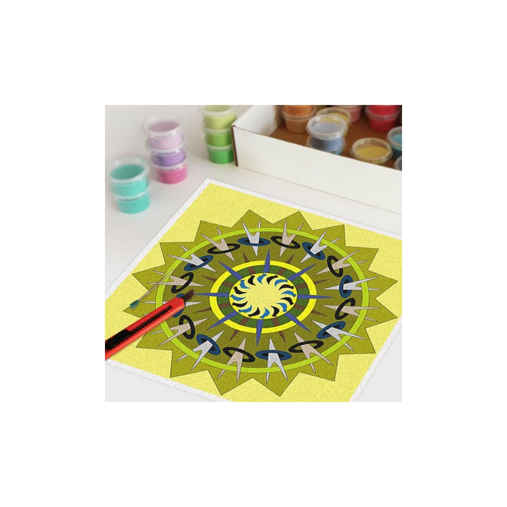 Obrázky vysypávané pískem je kreativní tvoření, které zaujme všechny generace svou jednoduchostí a nepřeberným množstvím barevných variant. Tvoření rozvíjí fantazii, barevné cítění a procvičuje jemnou motoriku prstů. Činnost může působit na uvolnění mysli, meditativně nebo relaxačně. Při tvoření v kolektivu působí pozitivně na týmový duch. Mandaly jsou velmi starou pomůckou při meditaci. V dnešní době je to nástroj pro relaxaci a sebepoznání. V mandalách se potkává barva (ženská energie) a tvar (mužská energie). To vše dohromady utváří harmonický celek nesoucí určitou energii, která během práce s obrazcem působí na duši člověka, který tvoří i na duši pozorovatele. Slovo mandala pochází ze sanskrtu a znamená kruh. Samotná mandala je nad kulturní symbol jednoty a rovnováhy vyskytující se ve všech dobách, kulturách i náboženstvích. Mandaly jsou staré jako lidstvo samo, což dokazuje i fakt, že nejstarší obrazce tohoto druhu se vyskytují už v paleolitu. Mandaly jsou všude kolem nás. Mandaly se dají najít také v půdorysu staveb ze starého Egypta, Babylónu a Jávy. V moderních dějinách je mandala dle posvátné geometrie (semeno života) půdorysem nejvyšší budovy světa v Dubaji.Doplňkové parametry