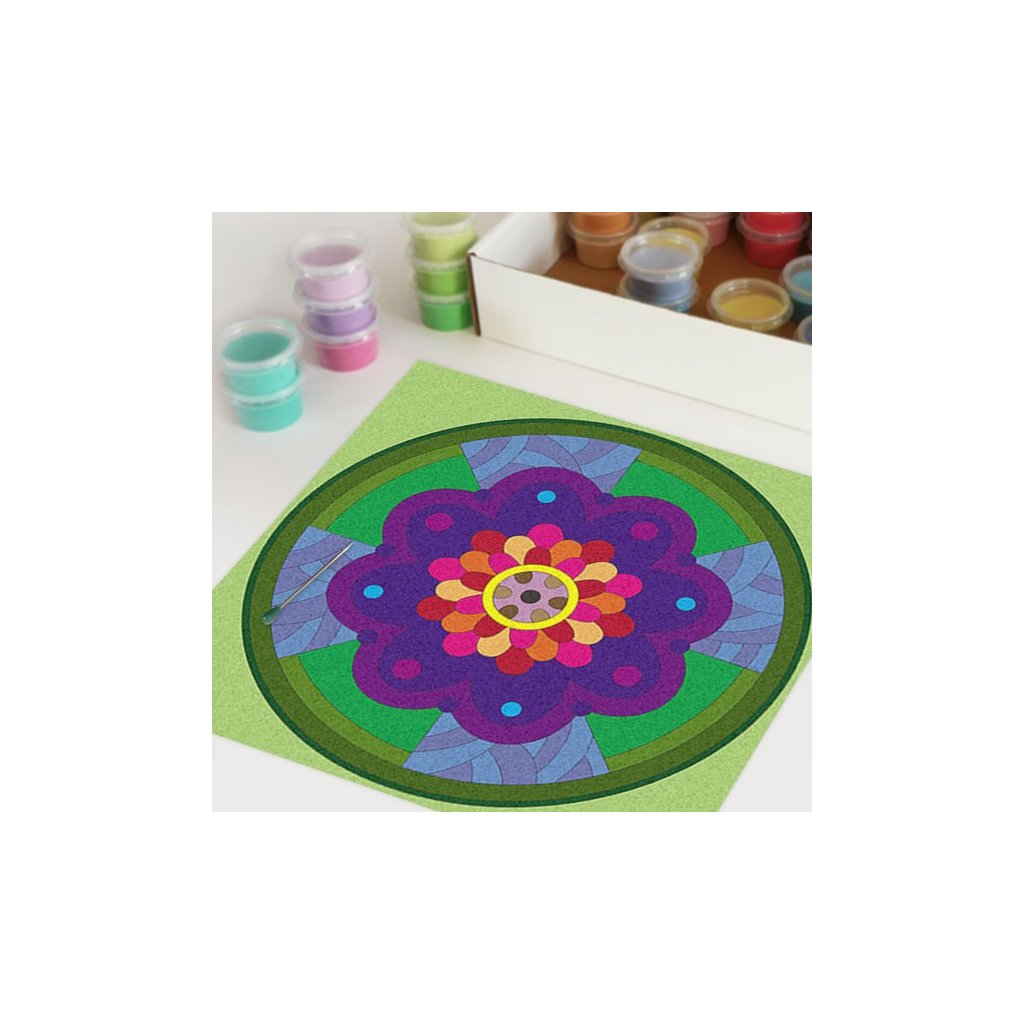 Obrázky vysypávané pískem je kreativní tvoření, které zaujme všechny generace svou jednoduchostí a nepřeberným množstvím barevných variant. Tvoření rozvíjí fantazii, barevné cítění a procvičuje jemnou motoriku prstů. Činnost může působit na uvolnění mysli, meditativně nebo relaxačně. Při tvoření v kolektivu působí pozitivně na týmový duch. Mandaly jsou velmi starou pomůckou při meditaci. V dnešní době je to nástroj pro relaxaci a sebepoznání. V mandalách se potkává barva (ženská energie) a tvar (mužská energie). To vše dohromady utváří harmonický celek nesoucí určitou energii, která během práce s obrazcem působí na duši člověka, který tvoří i na duši pozorovatele. Slovo mandala pochází ze sanskrtu a znamená kruh. Samotná mandala je nad kulturní symbol jednoty a rovnováhy vyskytující se ve všech dobách, kulturách i náboženstvích. Mandaly jsou staré jako lidstvo samo, což dokazuje i fakt, že nejstarší obrazce tohoto druhu se vyskytují už v paleolitu. Mandaly jsou všude kolem nás. Mandaly se dají najít také v půdorysu staveb ze starého Egypta, Babylónu a Jávy. V moderních dějinách je mandala dle posvátné geometrie (semeno života) půdorysem nejvyšší budovy světa v Dubaji.Doplňkové parametry