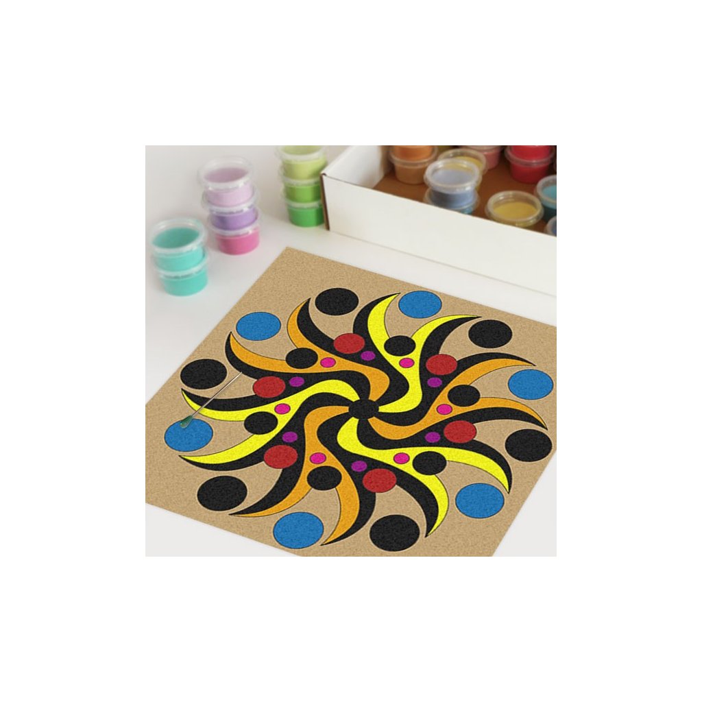 Obrázky vysypávané pískem je kreativní tvoření, které zaujme všechny generace svou jednoduchostí a nepřeberným množstvím barevných variant. Tvoření rozvíjí fantazii, barevné cítění a procvičuje jemnou motoriku prstů. Činnost může působit na uvolnění mysli, meditativně nebo relaxačně. Při tvoření v kolektivu působí pozitivně na týmový duch. Mandaly jsou velmi starou pomůckou při meditaci. V dnešní době je to nástroj pro relaxaci a sebepoznání. V mandalách se potkává barva (ženská energie) a tvar (mužská energie). To vše dohromady utváří harmonický celek nesoucí určitou energii, která během práce s obrazcem působí na duši člověka, který tvoří i na duši pozorovatele. Slovo mandala pochází ze sanskrtu a znamená kruh. Samotná mandala je nad kulturní symbol jednoty a rovnováhy vyskytující se ve všech dobách, kulturách i náboženstvích. Mandaly jsou staré jako lidstvo samo, což dokazuje i fakt, že nejstarší obrazce tohoto druhu se vyskytují už v paleolitu. Mandaly jsou všude kolem nás. Mandaly se dají najít také v půdorysu staveb ze starého Egypta, Babylónu a Jávy. V moderních dějinách je mandala dle posvátné geometrie (semeno života) půdorysem nejvyšší budovy světa v Dubaji.Doplňkové parametry