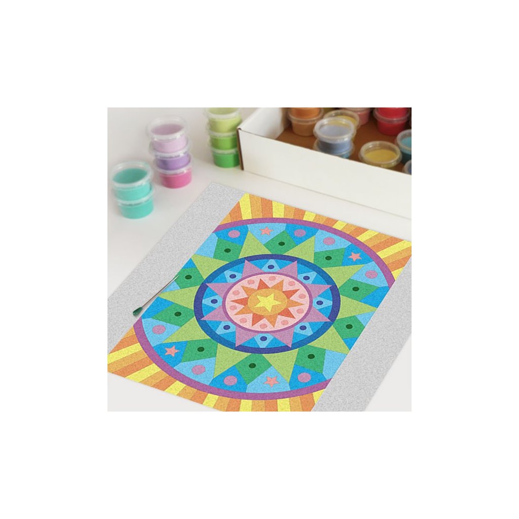 Obrázky vysypávané pískem je kreativní tvoření, které zaujme všechny generace svou jednoduchostí a nepřeberným množstvím barevných variant. Tvoření rozvíjí fantazii, barevné cítění a procvičuje jemnou motoriku prstů. Činnost může působit na uvolnění mysli, meditativně nebo relaxačně. Při tvoření v kolektivu působí pozitivně na týmový duch.Doplňkové parametry