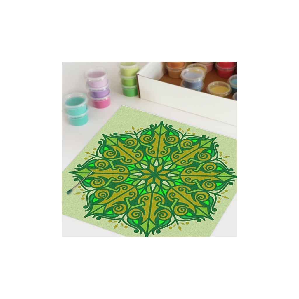 Obrázky vysypávané pískem je kreativní tvoření, které zaujme všechny generace svou jednoduchostí a nepřeberným množstvím barevných variant. Tvoření rozvíjí fantazii, barevné cítění a procvičuje jemnou motoriku prstů. Činnost může působit na uvolnění mysli, meditativně nebo relaxačně. Při tvoření v kolektivu působí pozitivně na týmový duch. Mandaly jsou velmi starou pomůckou při meditaci. V dnešní době je to nástroj pro relaxaci a sebepoznání. V mandalách se potkává barva (ženská energie) a tvar (mužská energie). To vše dohromady utváří harmonický celek nesoucí určitou energii, která během práce s obrazcem působí na duši člověka, který tvoří i na duši pozorovatele. Slovo mandala pochází ze sanskrtu a znamená kruh. Samotná mandala je nad kulturní symbol jednoty a rovnováhy vyskytující se ve všech dobách, kulturách i náboženstvích. Mandaly jsou staré jako lidstvo samo, což dokazuje i fakt, že nejstarší obrazce tohoto druhu se vyskytují už v paleolitu. Mandaly jsou všude kolem nás. Mandaly se dají najít také v půdorysu staveb ze starého Egypta, Babylónu a Jávy. V moderních dějinách je mandala dle posvátné geometrie (semeno života) půdorysem nejvyšší budovy světa v Dubaji.Doplňkové parametry