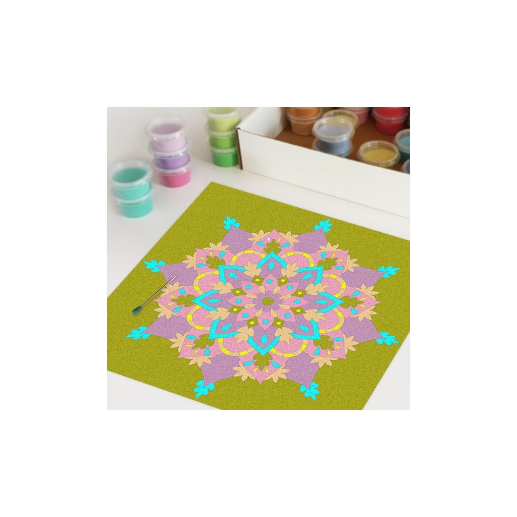 Obrázky vysypávané pískem je kreativní tvoření, které zaujme všechny generace svou jednoduchostí a nepřeberným množstvím barevných variant. Tvoření rozvíjí fantazii, barevné cítění a procvičuje jemnou motoriku prstů. Činnost může působit na uvolnění mysli, meditativně nebo relaxačně. Při tvoření v kolektivu působí pozitivně na týmový duch. Mandaly jsou velmi starou pomůckou při meditaci. V dnešní době je to nástroj pro relaxaci a sebepoznání. V mandalách se potkává barva (ženská energie) a tvar (mužská energie). To vše dohromady utváří harmonický celek nesoucí určitou energii, která během práce s obrazcem působí na duši člověka, který tvoří i na duši pozorovatele. Slovo mandala pochází ze sanskrtu a znamená kruh. Samotná mandala je nad kulturní symbol jednoty a rovnováhy vyskytující se ve všech dobách, kulturách i náboženstvích. Mandaly jsou staré jako lidstvo samo, což dokazuje i fakt, že nejstarší obrazce tohoto druhu se vyskytují už v paleolitu. Mandaly jsou všude kolem nás. Mandaly se dají najít také v půdorysu staveb ze starého Egypta, Babylónu a Jávy. V moderních dějinách je mandala dle posvátné geometrie (semeno života) půdorysem nejvyšší budovy světa v Dubaji.Doplňkové parametry