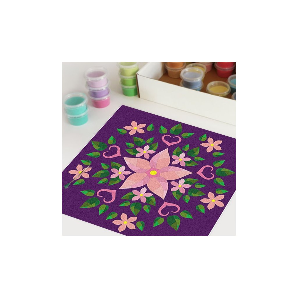 Obrázky vysypávané pískem je kreativní tvoření, které zaujme všechny generace svou jednoduchostí a nepřeberným množstvím barevných variant. Tvoření rozvíjí fantazii, barevné cítění a procvičuje jemnou motoriku prstů. Činnost může působit na uvolnění mysli, meditativně nebo relaxačně. Při tvoření v kolektivu působí pozitivně na týmový duch. Mandaly jsou velmi starou pomůckou při meditaci. V dnešní době je to nástroj pro relaxaci a sebepoznání. V mandalách se potkává barva (ženská energie) a tvar (mužská energie). To vše dohromady utváří harmonický celek nesoucí určitou energii, která během práce s obrazcem působí na duši člověka, který tvoří i na duši pozorovatele. Slovo mandala pochází ze sanskrtu a znamená kruh. Samotná mandala je nad kulturní symbol jednoty a rovnováhy vyskytující se ve všech dobách, kulturách i náboženstvích. Mandaly jsou staré jako lidstvo samo, což dokazuje i fakt, že nejstarší obrazce tohoto druhu se vyskytují už v paleolitu. Mandaly jsou všude kolem nás. Mandaly se dají najít také v půdorysu staveb ze starého Egypta, Babylónu a Jávy. V moderních dějinách je mandala dle posvátné geometrie (semeno života) půdorysem nejvyšší budovy světa v Dubaji.Doplňkové parametry