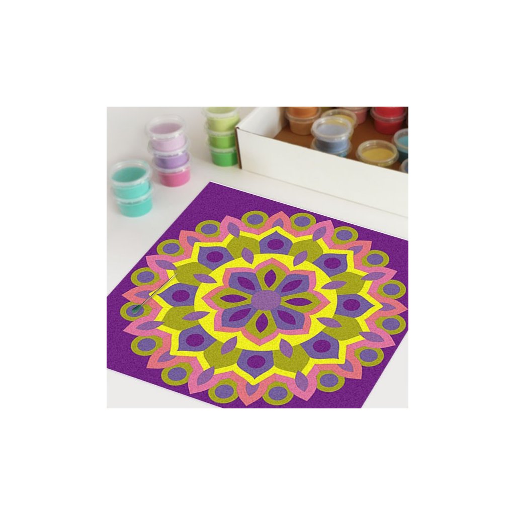 Obrázky vysypávané pískem je kreativní tvoření, které zaujme všechny generace svou jednoduchostí a nepřeberným množstvím barevných variant. Tvoření rozvíjí fantazii, barevné cítění a procvičuje jemnou motoriku prstů. Činnost může působit na uvolnění mysli, meditativně nebo relaxačně. Při tvoření v kolektivu působí pozitivně na týmový duch. Mandaly jsou velmi starou pomůckou při meditaci. V dnešní době je to nástroj pro relaxaci a sebepoznání. V mandalách se potkává barva (ženská energie) a tvar (mužská energie). To vše dohromady utváří harmonický celek nesoucí určitou energii, která během práce s obrazcem působí na duši člověka, který tvoří i na duši pozorovatele. Slovo mandala pochází ze sanskrtu a znamená kruh. Samotná mandala je nad kulturní symbol jednoty a rovnováhy vyskytující se ve všech dobách, kulturách i náboženstvích. Mandaly jsou staré jako lidstvo samo, což dokazuje i fakt, že nejstarší obrazce tohoto druhu se vyskytují už v paleolitu. Mandaly jsou všude kolem nás. Mandaly se dají najít také v půdorysu staveb ze starého Egypta, Babylónu a Jávy. V moderních dějinách je mandala dle posvátné geometrie (semeno života) půdorysem nejvyšší budovy světa v Dubaji.Doplňkové parametry