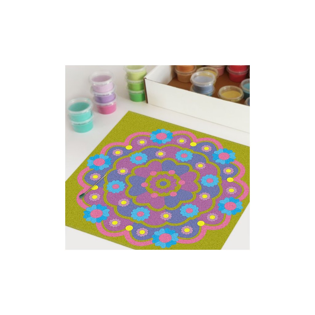 Obrázky vysypávané pískem je kreativní tvoření, které zaujme všechny generace svou jednoduchostí a nepřeberným množstvím barevných variant. Tvoření rozvíjí fantazii, barevné cítění a procvičuje jemnou motoriku prstů. Činnost může působit na uvolnění mysli, meditativně nebo relaxačně. Při tvoření v kolektivu působí pozitivně na týmový duch. Mandaly jsou velmi starou pomůckou při meditaci. V dnešní době je to nástroj pro relaxaci a sebepoznání. V mandalách se potkává barva (ženská energie) a tvar (mužská energie). To vše dohromady utváří harmonický celek nesoucí určitou energii, která během práce s obrazcem působí na duši člověka, který tvoří i na duši pozorovatele. Slovo mandala pochází ze sanskrtu a znamená kruh. Samotná mandala je nad kulturní symbol jednoty a rovnováhy vyskytující se ve všech dobách, kulturách i náboženstvích. Mandaly jsou staré jako lidstvo samo, což dokazuje i fakt, že nejstarší obrazce tohoto druhu se vyskytují už v paleolitu. Mandaly jsou všude kolem nás. Mandaly se dají najít také v půdorysu staveb ze starého Egypta, Babylónu a Jávy. V moderních dějinách je mandala dle posvátné geometrie (semeno života) půdorysem nejvyšší budovy světa v Dubaji.Doplňkové parametry
