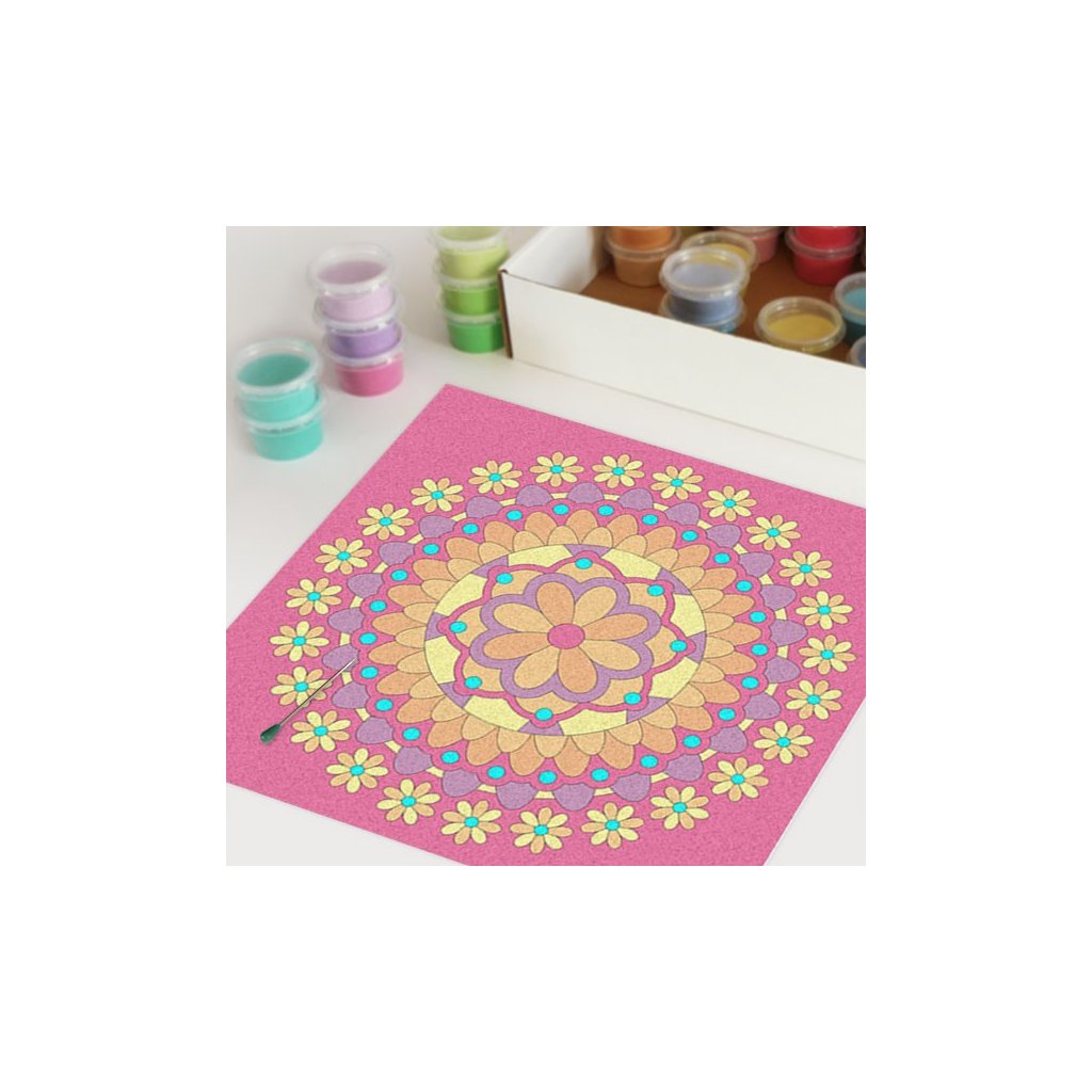 Obrázky vysypávané pískem je kreativní tvoření, které zaujme všechny generace svou jednoduchostí a nepřeberným množstvím barevných variant. Tvoření rozvíjí fantazii, barevné cítění a procvičuje jemnou motoriku prstů. Činnost může působit na uvolnění mysli, meditativně nebo relaxačně. Při tvoření v kolektivu působí pozitivně na týmový duch. Mandaly jsou velmi starou pomůckou při meditaci. V dnešní době je to nástroj pro relaxaci a sebepoznání. V mandalách se potkává barva (ženská energie) a tvar (mužská energie). To vše dohromady utváří harmonický celek nesoucí určitou energii, která během práce s obrazcem působí na duši člověka, který tvoří i na duši pozorovatele. Slovo mandala pochází ze sanskrtu a znamená kruh. Samotná mandala je nad kulturní symbol jednoty a rovnováhy vyskytující se ve všech dobách, kulturách i náboženstvích. Mandaly jsou staré jako lidstvo samo, což dokazuje i fakt, že nejstarší obrazce tohoto druhu se vyskytují už v paleolitu. Mandaly jsou všude kolem nás. Mandaly se dají najít také v půdorysu staveb ze starého Egypta, Babylónu a Jávy. V moderních dějinách je mandala dle posvátné geometrie (semeno života) půdorysem nejvyšší budovy světa v Dubaji.Doplňkové parametry