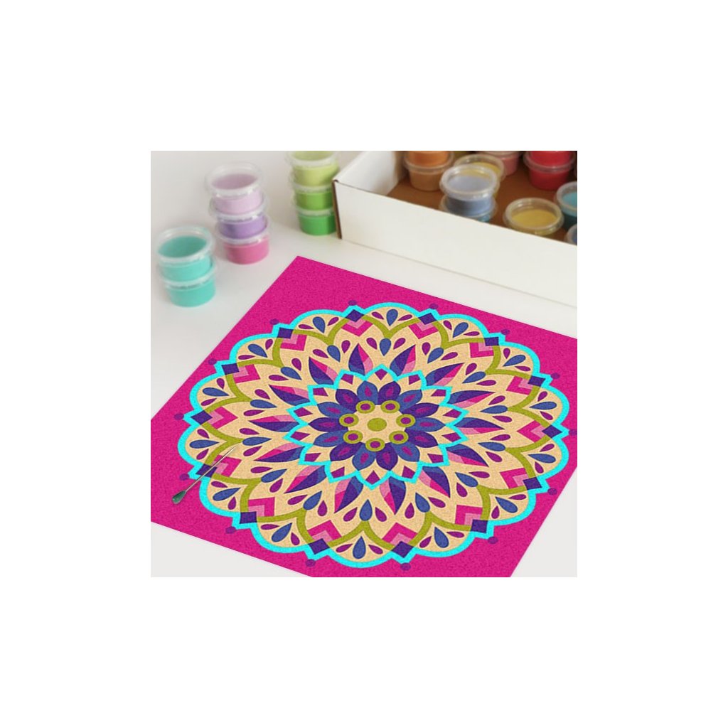 Obrázky vysypávané pískem je kreativní tvoření, které zaujme všechny generace svou jednoduchostí a nepřeberným množstvím barevných variant. Tvoření rozvíjí fantazii, barevné cítění a procvičuje jemnou motoriku prstů. Činnost může působit na uvolnění mysli, meditativně nebo relaxačně. Při tvoření v kolektivu působí pozitivně na týmový duch. Mandaly jsou velmi starou pomůckou při meditaci. V dnešní době je to nástroj pro relaxaci a sebepoznání. V mandalách se potkává barva (ženská energie) a tvar (mužská energie). To vše dohromady utváří harmonický celek nesoucí určitou energii, která během práce s obrazcem působí na duši člověka, který tvoří i na duši pozorovatele. Slovo mandala pochází ze sanskrtu a znamená kruh. Samotná mandala je nad kulturní symbol jednoty a rovnováhy vyskytující se ve všech dobách, kulturách i náboženstvích. Mandaly jsou staré jako lidstvo samo, což dokazuje i fakt, že nejstarší obrazce tohoto druhu se vyskytují už v paleolitu. Mandaly jsou všude kolem nás. Mandaly se dají najít také v půdorysu staveb ze starého Egypta, Babylónu a Jávy. V moderních dějinách je mandala dle posvátné geometrie (semeno života) půdorysem nejvyšší budovy světa v Dubaji.Doplňkové parametry