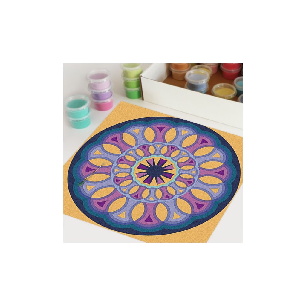 Obrázky vysypávané pískem je kreativní tvoření, které zaujme všechny generace svou jednoduchostí a nepřeberným množstvím barevných variant. Tvoření rozvíjí fantazii, barevné cítění a procvičuje jemnou motoriku prstů. Činnost může působit na uvolnění mysli, meditativně nebo relaxačně. Při tvoření v kolektivu působí pozitivně na týmový duch. Mandaly jsou velmi starou pomůckou při meditaci. V dnešní době je to nástroj pro relaxaci a sebepoznání. V mandalách se potkává barva (ženská energie) a tvar (mužská energie). To vše dohromady utváří harmonický celek nesoucí určitou energii, která během práce s obrazcem působí na duši člověka, který tvoří i na duši pozorovatele. Slovo mandala pochází ze sanskrtu a znamená kruh. Samotná mandala je nad kulturní symbol jednoty a rovnováhy vyskytující se ve všech dobách, kulturách i náboženstvích. Mandaly jsou staré jako lidstvo samo, což dokazuje i fakt, že nejstarší obrazce tohoto druhu se vyskytují už v paleolitu. Mandaly jsou všude kolem nás. Mandaly se dají najít také v půdorysu staveb ze starého Egypta, Babylónu a Jávy. V moderních dějinách je mandala dle posvátné geometrie (semeno života) půdorysem nejvyšší budovy světa v Dubaji.Doplňkové parametry