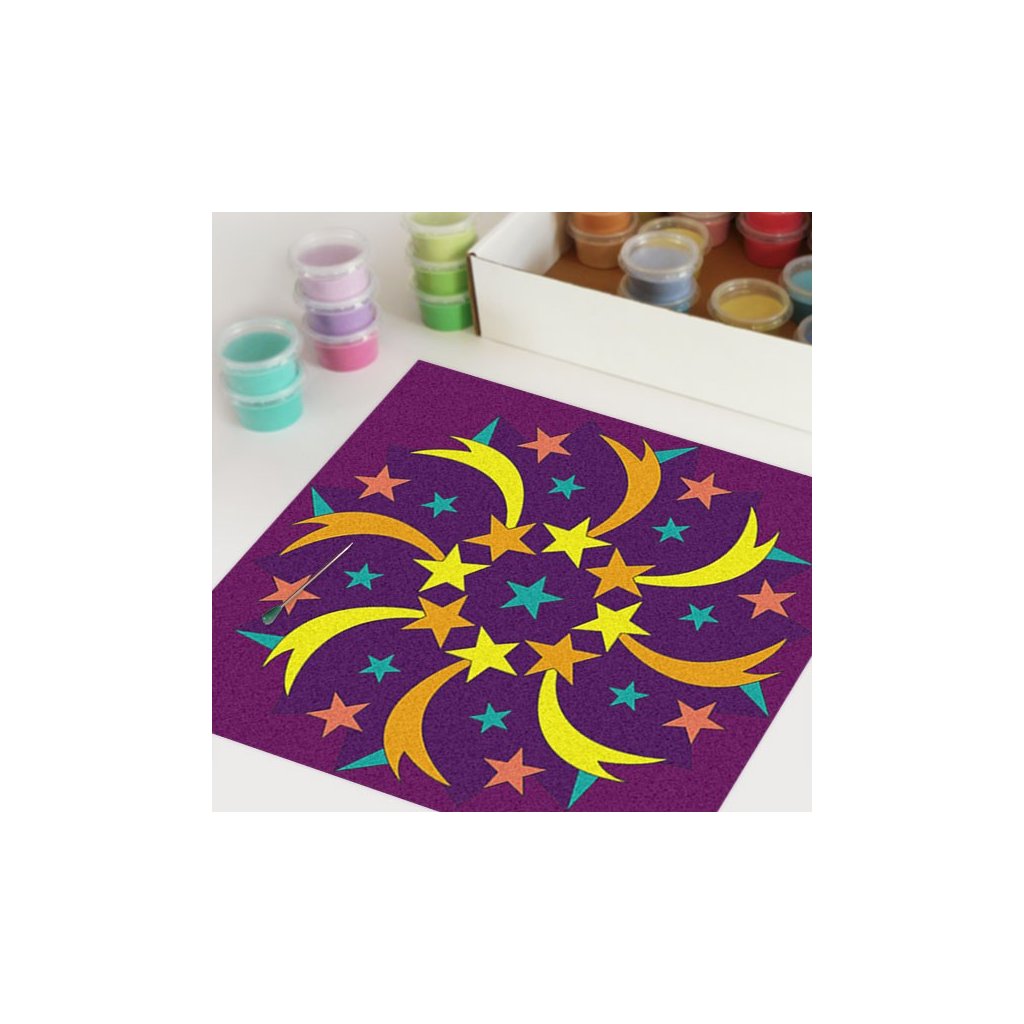 Obrázky vysypávané pískem je kreativní tvoření, které zaujme všechny generace svou jednoduchostí a nepřeberným množstvím barevných variant. Tvoření rozvíjí fantazii, barevné cítění a procvičuje jemnou motoriku prstů. Činnost může působit na uvolnění mysli, meditativně nebo relaxačně. Při tvoření v kolektivu působí pozitivně na týmový duch. Mandaly jsou velmi starou pomůckou při meditaci. V dnešní době je to nástroj pro relaxaci a sebepoznání. V mandalách se potkává barva (ženská energie) a tvar (mužská energie). To vše dohromady utváří harmonický celek nesoucí určitou energii, která během práce s obrazcem působí na duši člověka, který tvoří i na duši pozorovatele. Slovo mandala pochází ze sanskrtu a znamená kruh. Samotná mandala je nad kulturní symbol jednoty a rovnováhy vyskytující se ve všech dobách, kulturách i náboženstvích. Mandaly jsou staré jako lidstvo samo, což dokazuje i fakt, že nejstarší obrazce tohoto druhu se vyskytují už v paleolitu. Mandaly jsou všude kolem nás. Mandaly se dají najít také v půdorysu staveb ze starého Egypta, Babylónu a Jávy. V moderních dějinách je mandala dle posvátné geometrie (semeno života) půdorysem nejvyšší budovy světa v Dubaji.Doplňkové parametry