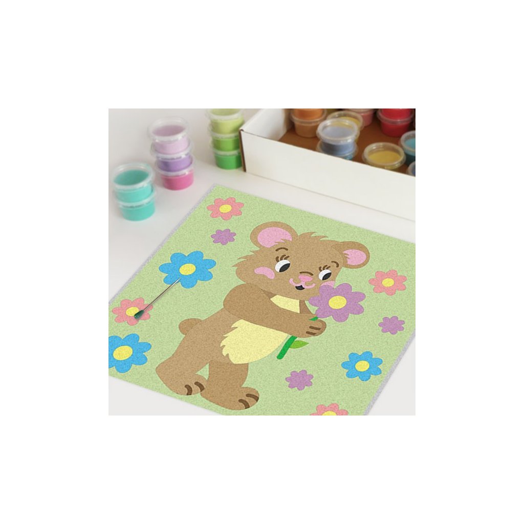 Obrázky vysypávané pískem je kreativní tvoření, které zaujme všechny generace svou jednoduchostí a nepřeberným množstvím barevných variant. Tvoření rozvíjí fantazii, barevné cítění a procvičuje jemnou motoriku prstů. Činnost může působit na uvolnění mysli, meditativně nebo relaxačně. Při tvoření v kolektivu působí pozitivně na týmový duch.Doplňkové parametry