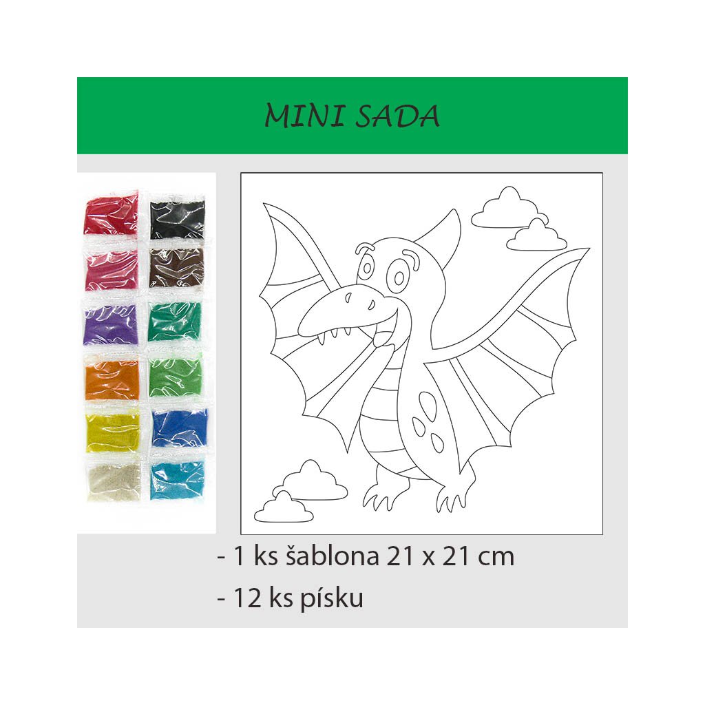 - 12 ks barevných písků po 5g (základní barvy)
