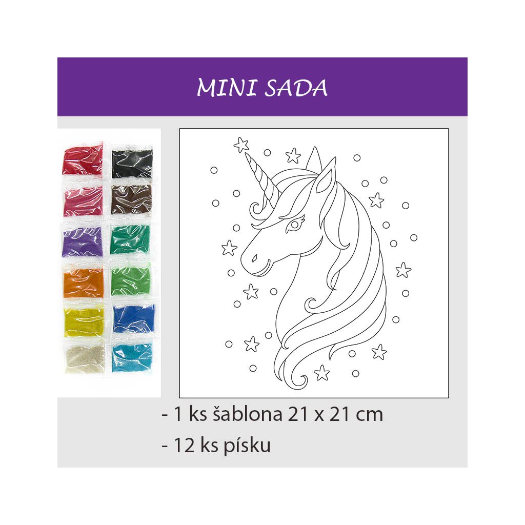 Unikátní tvořivá mini sada obrázků z barevného písku.