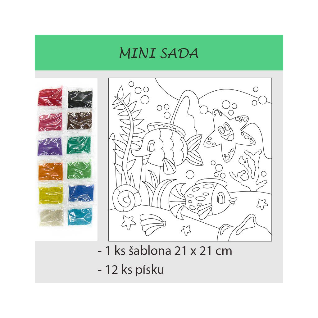 - 12 ks barevných písků po 5g (základní barvy)