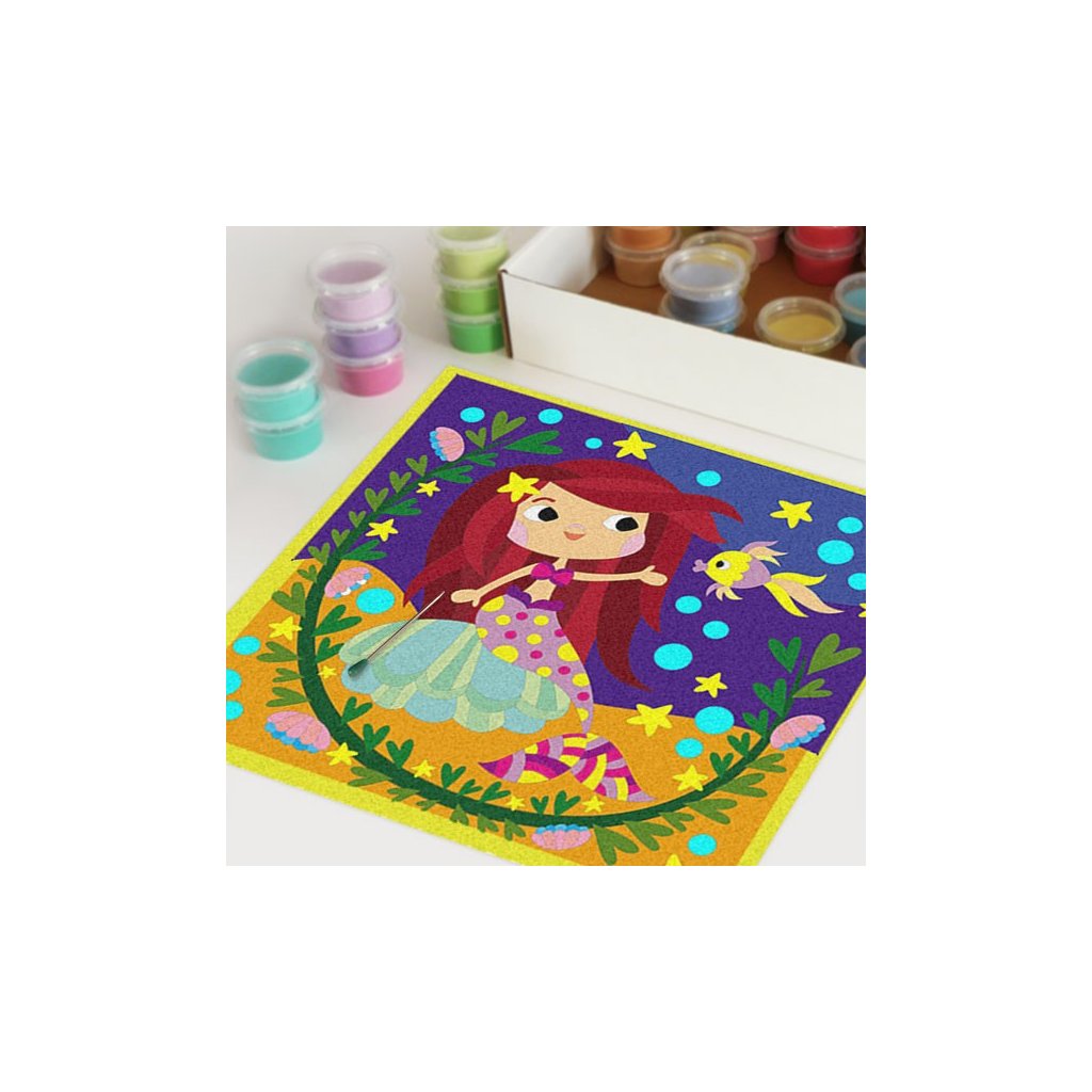 Obrázky vysypávané pískem je kreativní tvoření, které zaujme všechny generace svou jednoduchostí a nepřeberným množstvím barevných variant. Tvoření rozvíjí fantazii, barevné cítění a procvičuje jemnou motoriku prstů. Činnost může působit na uvolnění mysli, meditativně nebo relaxačně. Při tvoření v kolektivu působí pozitivně na týmový duch.Doplňkové parametry