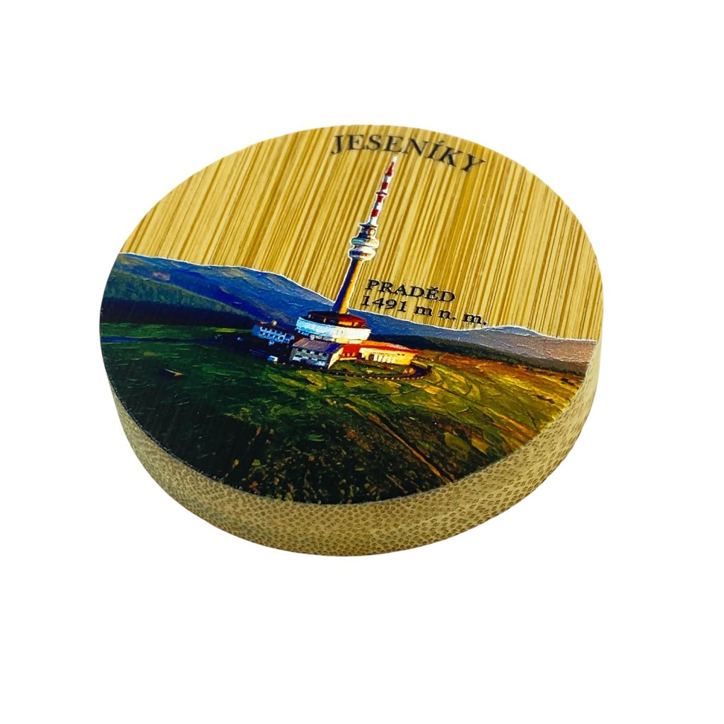 Je vyroben z přírodního bambusu, zdoben motivem jedné z ikonických českých hor ve fotograficko-malířském stylu, a ze zadní strany vybaven silnými magnety, díky kterým vždy čeká po ruce – na lednici, na chatě, v kuchyni nebo v dílně.