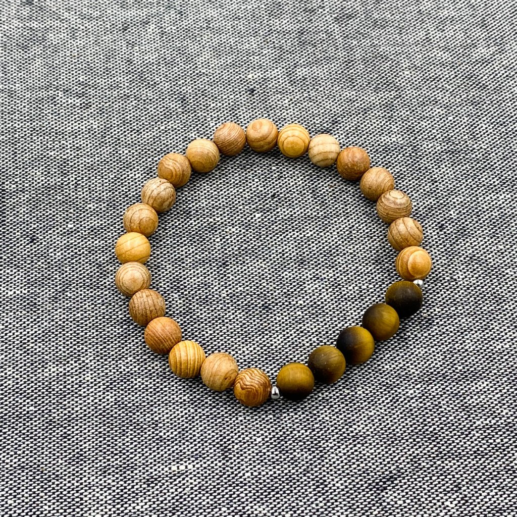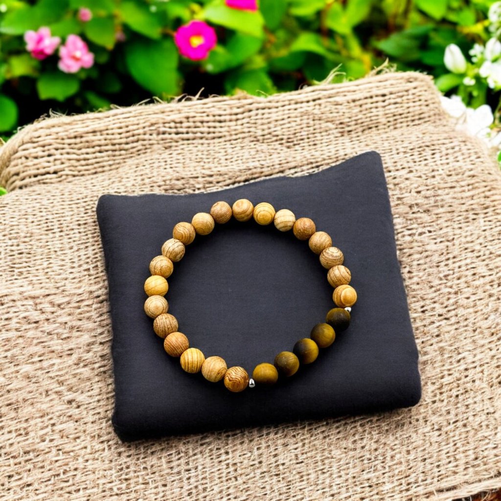 Ponořte se do světa přírodní síly a mystiky s náramkem z kašťového dřeva a tygřího oka.