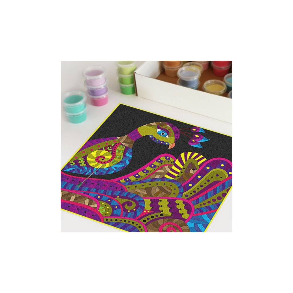 Obrázky vysypávané pískem je kreativní tvoření, které zaujme všechny generace svou jednoduchostí a nepřeberným množstvím barevných variant. Tvoření rozvíjí fantazii, barevné cítění a procvičuje jemnou motoriku prstů. Činnost může působit na uvolnění mysli, meditativně nebo relaxačně. Při tvoření v kolektivu působí pozitivně na týmový duch. Mandaly jsou velmi starou pomůckou při meditaci. V dnešní době je to nástroj pro relaxaci a sebepoznání. V mandalách se potkává barva (ženská energie) a tvar (mužská energie). To vše dohromady utváří harmonický celek nesoucí určitou energii, která během práce s obrazcem působí na duši člověka, který tvoří i na duši pozorovatele. Slovo mandala pochází ze sanskrtu a znamená kruh. Samotná mandala je nad kulturní symbol jednoty a rovnováhy vyskytující se ve všech dobách, kulturách i náboženstvích. Mandaly jsou staré jako lidstvo samo, což dokazuje i fakt, že nejstarší obrazce tohoto druhu se vyskytují už v paleolitu. Mandaly jsou všude kolem nás. Mandaly se dají najít také v půdorysu staveb ze starého Egypta, Babylónu a Jávy. V moderních dějinách je mandala dle posvátné geometrie (semeno života) půdorysem nejvyšší budovy světa v Dubaji.Doplňkové parametry