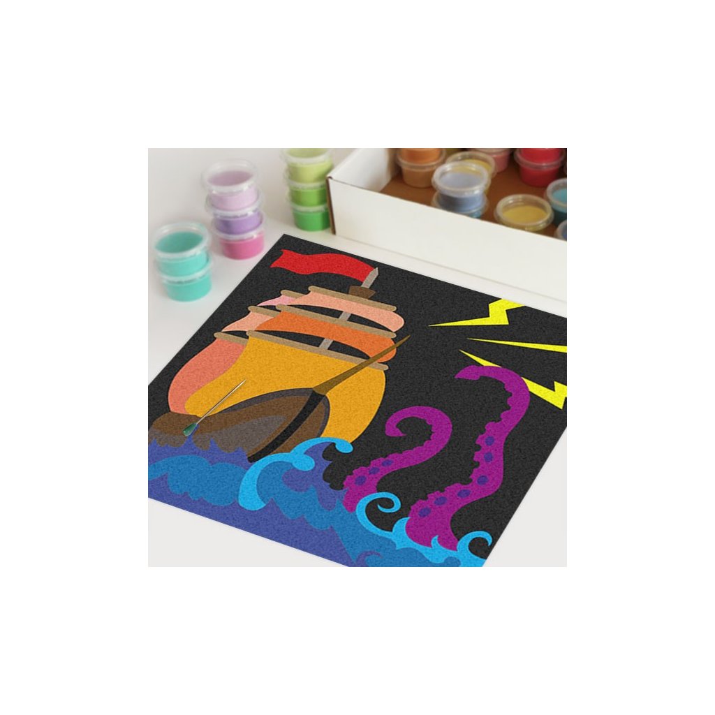 Obrázky vysypávané pískem je kreativní tvoření, které zaujme všechny generace svou jednoduchostí a nepřeberným množstvím barevných variant. Tvoření rozvíjí fantazii, barevné cítění a procvičuje jemnou motoriku prstů. Činnost může působit na uvolnění mysli, meditativně nebo relaxačně. Při tvoření v kolektivu působí pozitivně na týmový duch.Doplňkové parametry