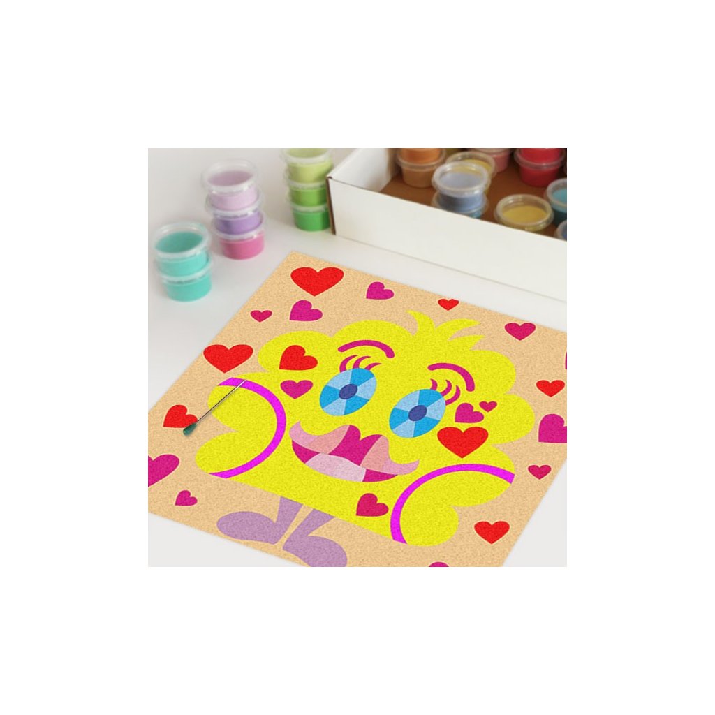 Obrázky vysypávané pískem je kreativní tvoření, které zaujme všechny generace svou jednoduchostí a nepřeberným množstvím barevných variant. Tvoření rozvíjí fantazii, barevné cítění a procvičuje jemnou motoriku prstů. Činnost může působit na uvolnění mysli, meditativně nebo relaxačně. Při tvoření v kolektivu působí pozitivně na týmový duch.Doplňkové parametry