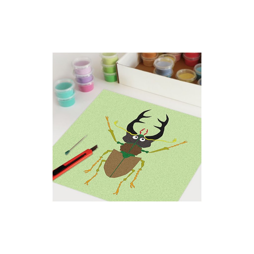 Obrázky vysypávané pískem je kreativní tvoření, které zaujme všechny generace svou jednoduchostí a nepřeberným množstvím barevných variant. Tvoření rozvíjí fantazii, barevné cítění a procvičuje jemnou motoriku prstů. Činnost může působit na uvolnění mysli, meditativně nebo relaxačně. Při tvoření v kolektivu působí pozitivně na týmový duch.Doplňkové parametry