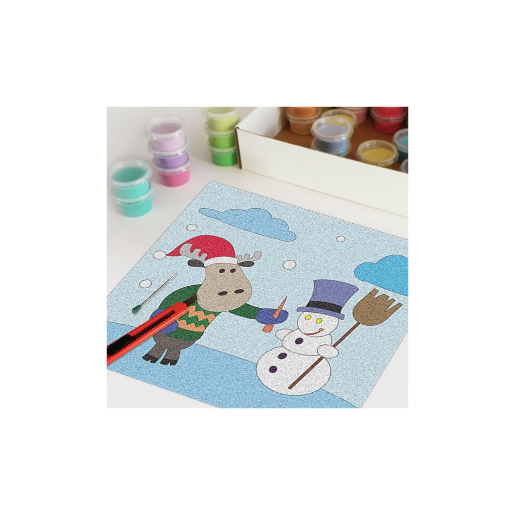 Obrázky vysypávané pískem je kreativní tvoření, které zaujme všechny generace svou jednoduchostí a nepřeberným množstvím barevných variant. Tvoření rozvíjí fantazii, barevné cítění a procvičuje jemnou motoriku prstů. Činnost může působit na uvolnění mysli, meditativně nebo relaxačně. Při tvoření v kolektivu působí pozitivně na týmový duch.Doplňkové parametry