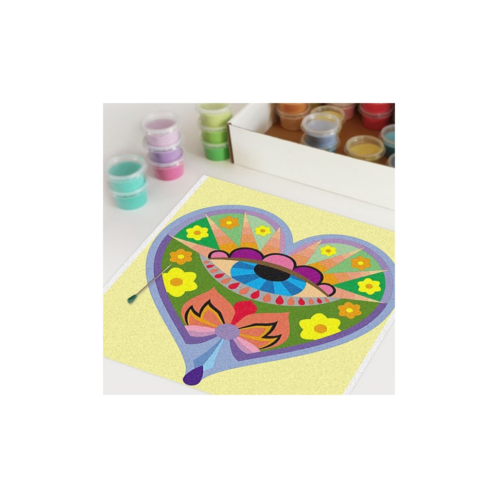 Obrázky vysypávané pískem je kreativní tvoření, které zaujme všechny generace svou jednoduchostí a nepřeberným množstvím barevných variant. Tvoření rozvíjí fantazii, barevné cítění a procvičuje jemnou motoriku prstů. Činnost může působit na uvolnění mysli, meditativně nebo relaxačně. Při tvoření v kolektivu působí pozitivně na týmový duch. Mandaly jsou velmi starou pomůckou při meditaci. V dnešní době je to nástroj pro relaxaci a sebepoznání. V mandalách se potkává barva (ženská energie) a tvar (mužská energie). To vše dohromady utváří harmonický celek nesoucí určitou energii, která během práce s obrazcem působí na duši člověka, který tvoří i na duši pozorovatele. Slovo mandala pochází ze sanskrtu a znamená kruh. Samotná mandala je nad kulturní symbol jednoty a rovnováhy vyskytující se ve všech dobách, kulturách i náboženstvích. Mandaly jsou staré jako lidstvo samo, což dokazuje i fakt, že nejstarší obrazce tohoto druhu se vyskytují už v paleolitu. Mandaly jsou všude kolem nás. Mandaly se dají najít také v půdorysu staveb ze starého Egypta, Babylónu a Jávy. V moderních dějinách je mandala dle posvátné geometrie (semeno života) půdorysem nejvyšší budovy světa v Dubaji.Doplňkové parametry